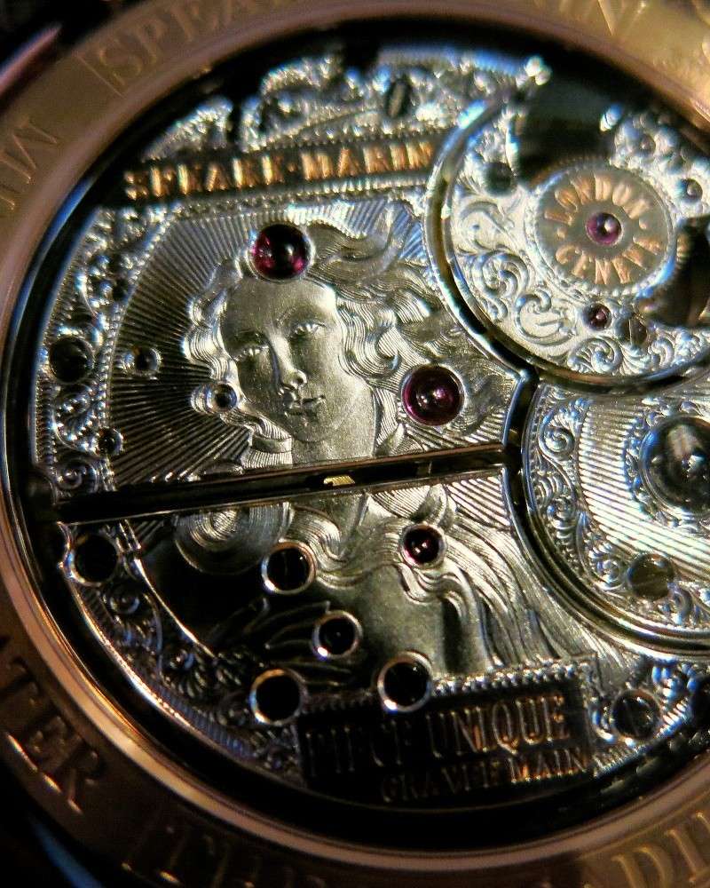 Terminons par un créateur et ami commun découvert par l’intermédiaire d’Ekaterina lors de son exposition à Deauville où Peter Speake-Marin m’avait lui-même présenté et fait fonctionner la pièce unique que celle-ci venait d’acquérir : la « Renaissance » gravée à l’image de la Vénus de Botticelli.