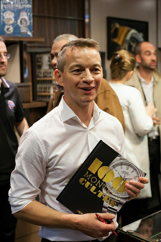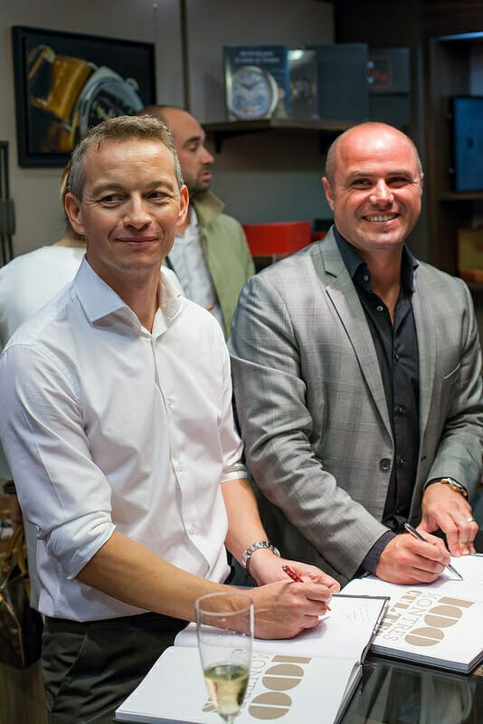 Emmanuel Lacroix, collectionneur et passionné d’horlogerie, et Thierry Gasquez, fondateur de Passion Horlogère, se sont livrés avec plaisir à une séance de dédicace qui réunissait une soixantaine d’invités chez MisterChrono, en plein cœur du triangle d’or de l’horlogerie parisienne. Leur livre 100 Montres Cultes est désormais dans les bacs !