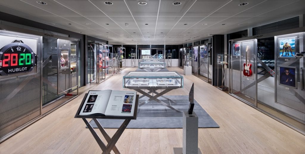 Pour célèbre son 40ème anniversaire, Hublot a travaillé en étroite collaboration avec Samuel Ross, créateur de mode, designer industriel britannique et nouveau membre de la famille Hublot. Avec son style épuré, texturé et équilibré, le wunderkind (l’enfant prodige) du design a traduit en matières 40 ans d’histoire Hublot et imaginé les nouveaux intérieurs des boutiques Hublot dans une ligne esthétique et fonctionnelle tout à son image.
