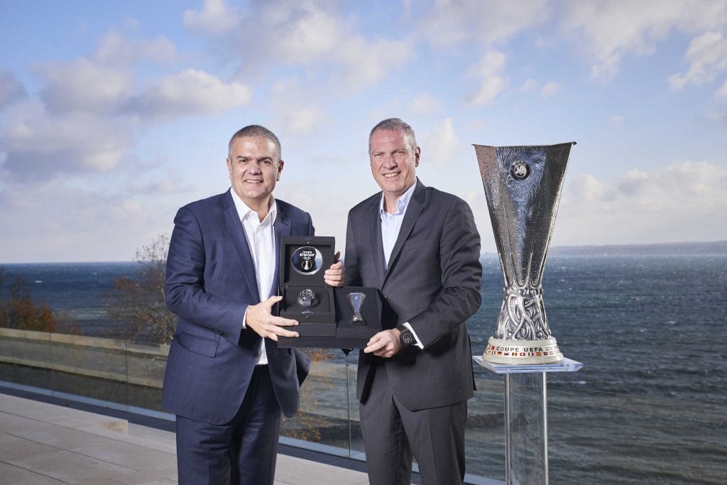 Hublot a donné rendez-vous à la planète football au siège de l’UEFA à Nyon. Aux côtés de Guy-Laurent Epstein – Directeur Marketing de l’UEFA, Ricardo Guadalupe – CEO de Hublot, a dévoilé la première montre officielle de l’UEFA Europa League – une Classic Fusion UEFA Europa League. La compétition est passionnante, riche de son histoire, et unit joueurs et afficionados, fiers de représenter leurs clubs partout en Europe : tous se battent pour obtenir la gloire sur le vieux continent. L’an dernier, c’est sous l’impulsion de nul autre que José Mourinho – ambassadeur Hublot – que Manchester United FC a gagné son ticket d’entrée pour l’UEFA Champions League.