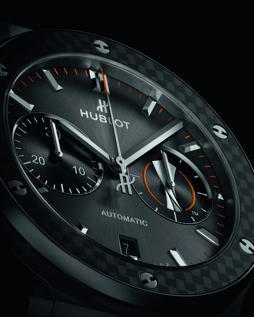 Montre accréditée officielle de l’UEFA Europa League depuis 2015, la manufacture horlogère suisse présente sa première montre aux couleurs de la compétition. La Classic Fusion Chronograph UEFA Europa League, éditée à 100 exemplaires, abrite un mouvement chronographe à remontage automatique HUB1143. Habillée des nuances de gris du titane, elle reprend l’éclat et les reflets du trophée en argent. Ponctuée d’orange – symbole de force et d’endurance – elle évoque les nuances dorées qui se trouvent à l’intérieur de la coupe. Son boîtier de 45 mm affiche le dessin du trophée dans le compteur des secondes à 3H. Rehaussée d’une lunette en carbone, elle arbore un bracelet en caoutchouc naturel gris ligné.