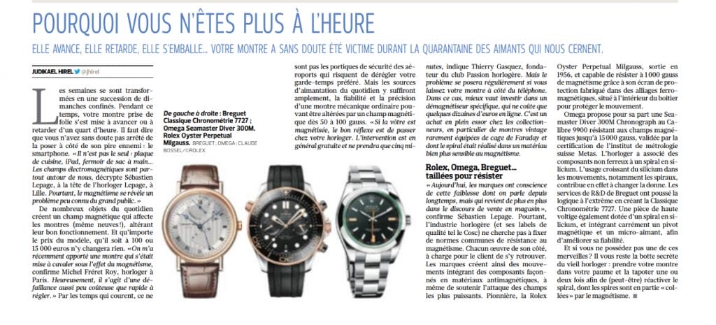 Ce sujet vient en écho à l’excellent article paru ce jour dans le quotidien Le Figaro et signé de Judikael Hirel, au sujet des dangers du magnétisme pour les montres mécaniques.