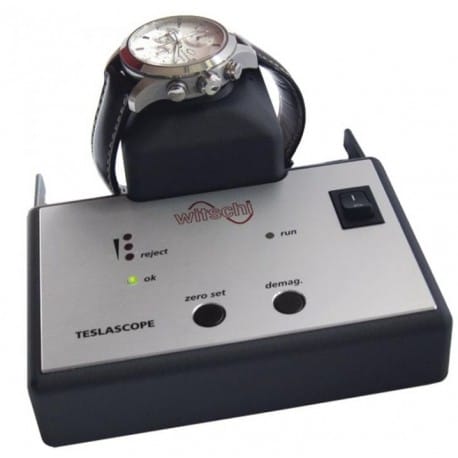 Mais pour les collectionneurs et plus particulièrement les collectionneurs de montres Vintage, nous ne saurions vous conseiller autre chose que de vous équiper d’un appareil à démagnétiser les montres. Et plutôt que de choisir un appareil gadget à 10 €sur Amazon dont le résultat n’est absolument pas garanti, nous vous conseillons le Démagnétiseur Electronique Elma Antimag proposé par MisterChrono. On a là un appareil testé et approuvé par ce professionnel de l’accessoire horloger connu et reconnu de tous les amateurs d’horlogerie. Le coût de 249 € peut sembler élevé, mais le service rendu pour toute une collection de montres dont on veut prendre soin est largement à la hauteur. MisterChrono propose aussi un appareil de type Witschi. Mais là nous ne le conseillerions qu’à des professionnels ou à des possesseurs de montres de collection de très grande valeur. Car l’investissement est ici bien plus important avec un appareil facturé 1 585 €. Si vous le souhaitez et si vous le pouvez, sachez que « qui peut le plus peut le moins ».