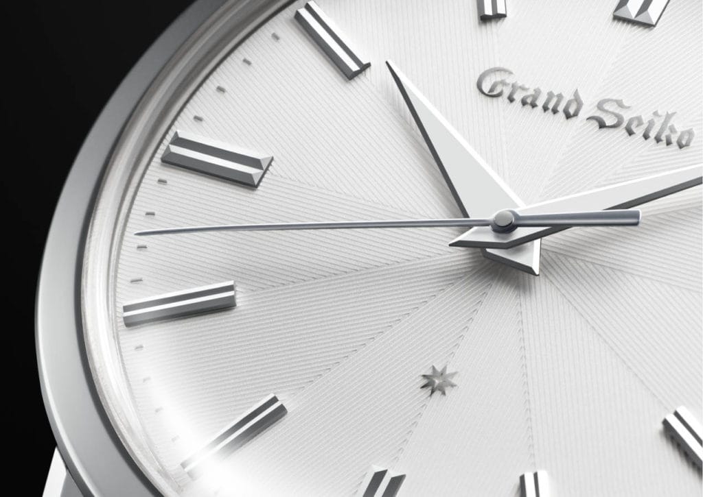 Le motif complexe du cadran est réalisé à l’aide de techniques de traitement qui créent une surface délicate avec des effets de profondeur. Comme le veut la tradition depuis les années 60, il est serti d’une étoile, située à six heures, indiquant que les index sont en or massif. Les jeux d’ombre et de lumière sur le cadran, éléments signature des garde-temps Grand Seiko, sont accentués par une aiguille des secondes qui améliore davantage la lisibilité. Les index et les aiguilles des heures et des minutes sont en or blanc 14 carat. Ces éléments ont été spécialement taillés de manière à souligner la beauté intemporelle de l’or.