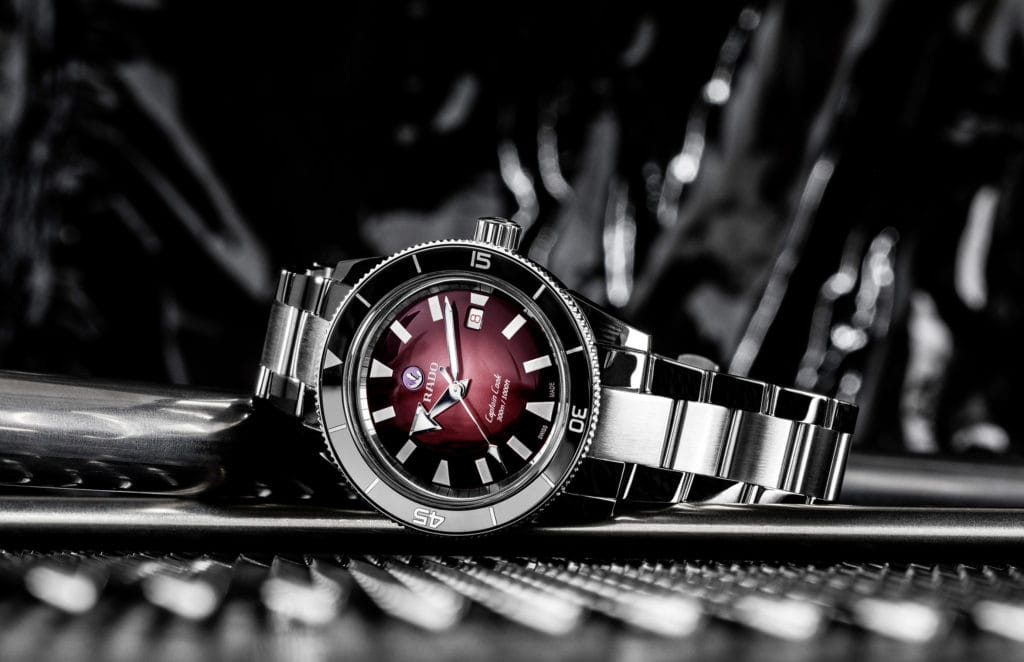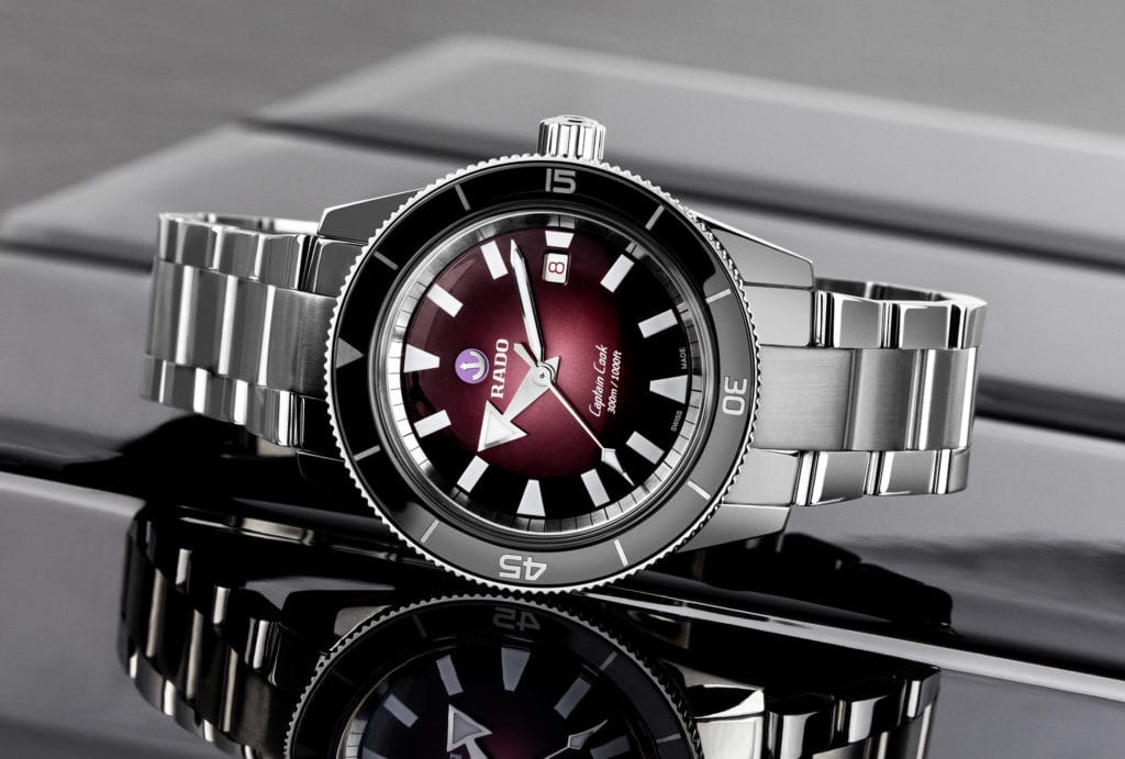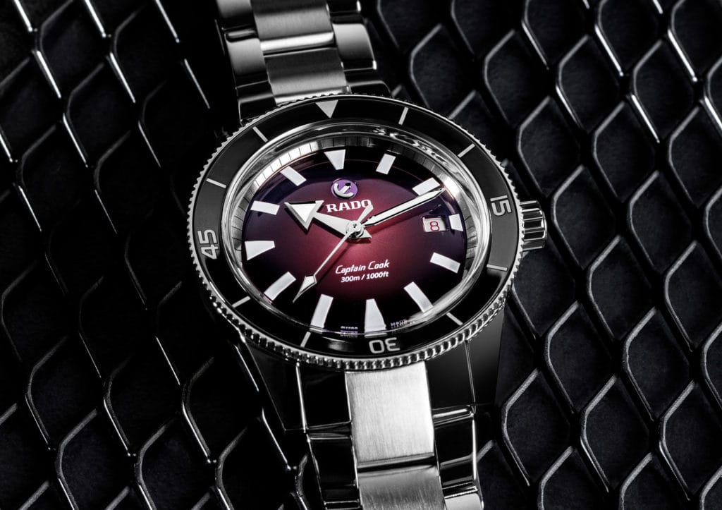 Rado démontre parfaitement cela avec des montres extraites de plusieurs collections, par exemple la Captain Cook sportive. L’écran présente un dégradé de couleur rouge sombre qui tend vers le noir. Le noir est repris par la lunette rotative en céramique haute technologie noire. Un sublime bracelet à trois rangées en acier inoxydable souligne la puissante première impression, conférant une aura aussi mystique que masculine.