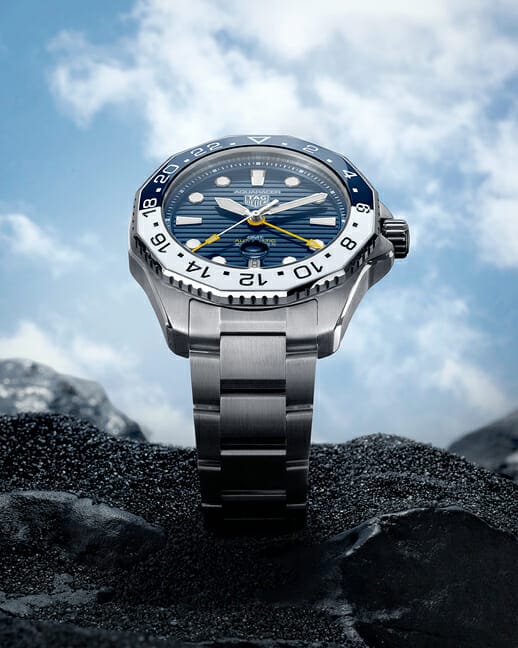 Le lancement de la TAG Heuer Aquaracer Professional 300 GMT marque une nouvelle étape dans l’évolution de la nouvelle famille TAG Heuer Aquaracer Professional, qui comprend aussi la collection TAG Heuer Aquaracer Professional 200. Ce modèle inédit est pourvu des six fonctionnalités emblématiques de la TAG Heuer Aquaracer et marie ainsi parfaitement ergonomie et luxe. Cette montre est l’accessoire ultime pour tous les surfeurs, les plongeurs et les aventuriers qui voyagent à travers les différents fuseaux horaires.