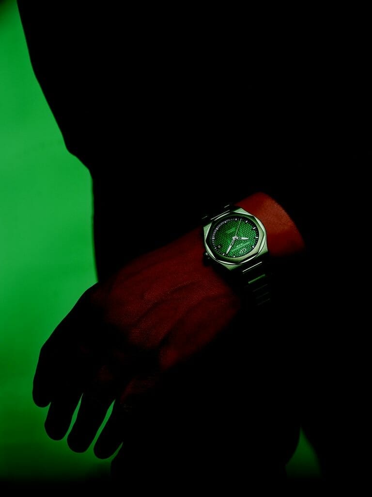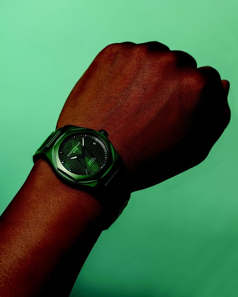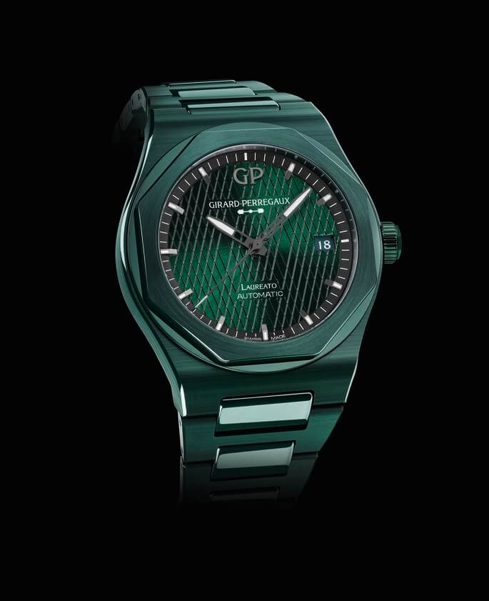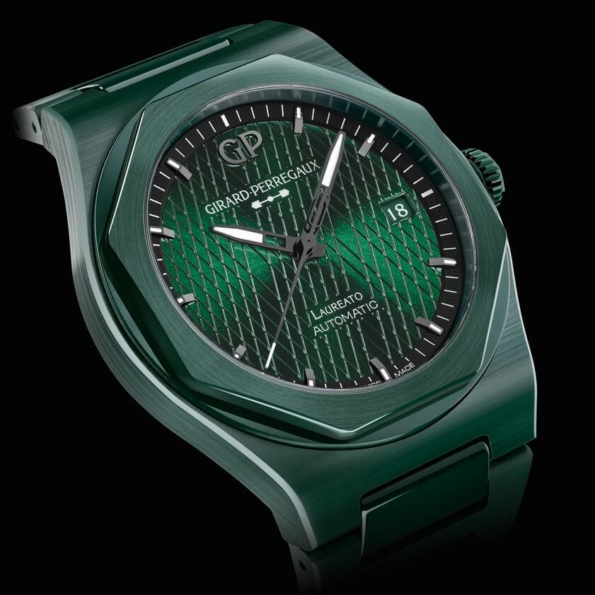 Comme le souligne Patrick Pruniaux, CEO de Girard-Perregaux: « De prime abord, le design de la Laureato est distinctif mais cohérent. Son style se compose de lignes géométriques nettes tout en exprimant une certaine douceur. Le contraste entre des finitions polies et satinées, un bracelet intégré ergonomique et, bien sûr, comme toujours, un mouvement conçu en interne… Tels sont les principaux ingrédients du remarquable succès de la Laureato. Ces mêmes ingrédients sont de retour dans la nouvelle Laureato Green Ceramic Aston Martin Edition, auxquels s’ajoute un matériau intéressant, extrêmement contemporain. »