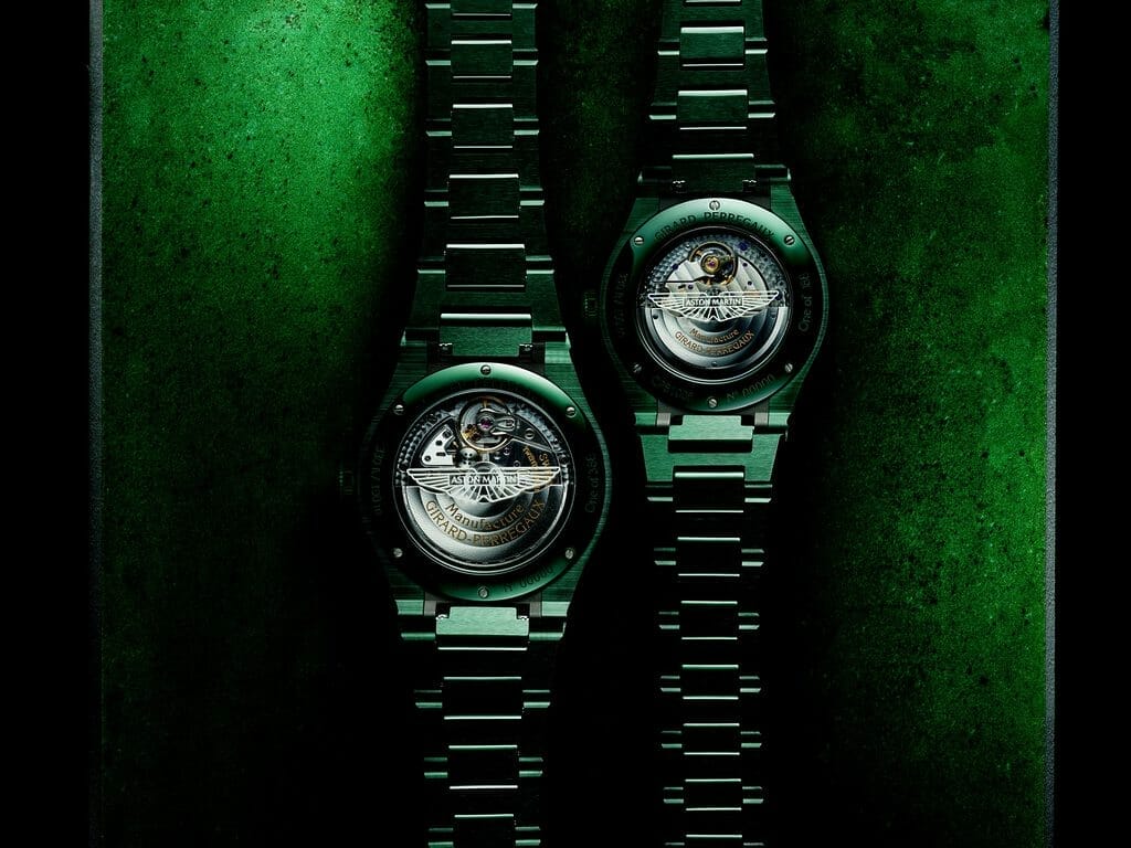 Les deux versions de la Laureato Green Ceramic Aston Martin Edition arborent un fin boîtier. Le modèle de 42 mm est entraîné par le Calibre GP01800 tandis que la version de 38 mm est animée par le Calibre GP03300. Conçus en interne, ces deux mouvements à remontage automatique peuvent être admirés à travers un fond vitré personnalisé avec le logo Aston Martin. Fidèle à la réputation que la Maison a acquise pour ses magnifiques expressions de Haute Horlogerie, chaque mouvement est superbement travaillé. La platine est décorée par perlage tandis que d’autres composants présentent anglage, polissage miroir, finition satinée, colimaçonnage, finition soleillée et diverses gravures. Les ponts sont ornés de Côtes de Genève droites et la masse oscillante est magnifiée par des Côtes de Genève circulaires. Les mouvements offrent par ailleurs une réserve de marche d’au moins 46 heures (38 mm) et 54 heures (42 mm). La Laureato Green Ceramic Aston Martin Edition (42 mm & 38 mm) sera en vente en juin 2023 dans le monde entier auprès de détaillants agréés par Girard-Perregaux.