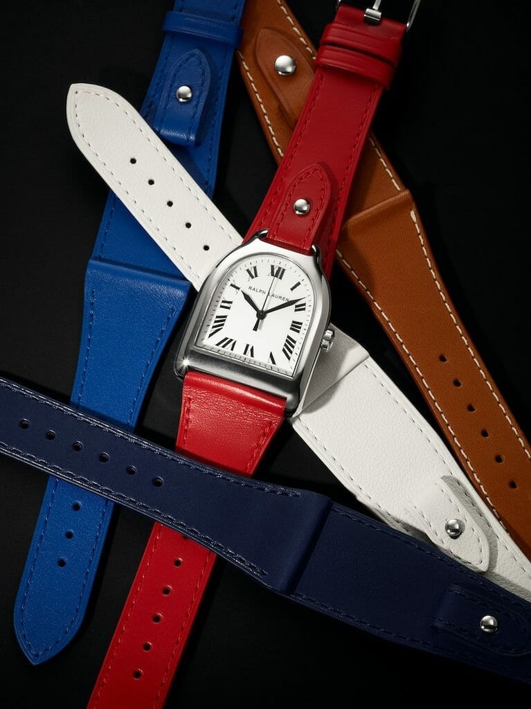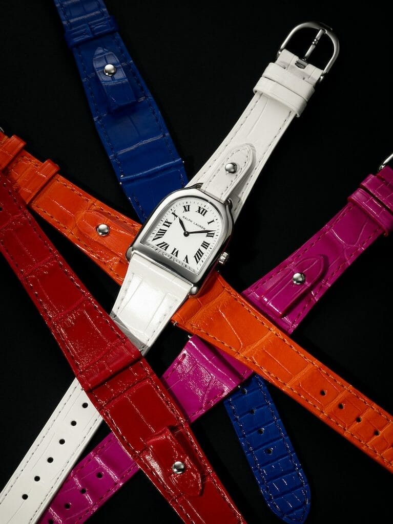 Les montres Ralph Lauren Stirrup Link proposent un boîtier étrier sur un bracelet à maillons qui s’emboîtent les uns dans les autres, de sorte que le bracelet repose à plat sur le poignet en suivant exactement ses courbes.