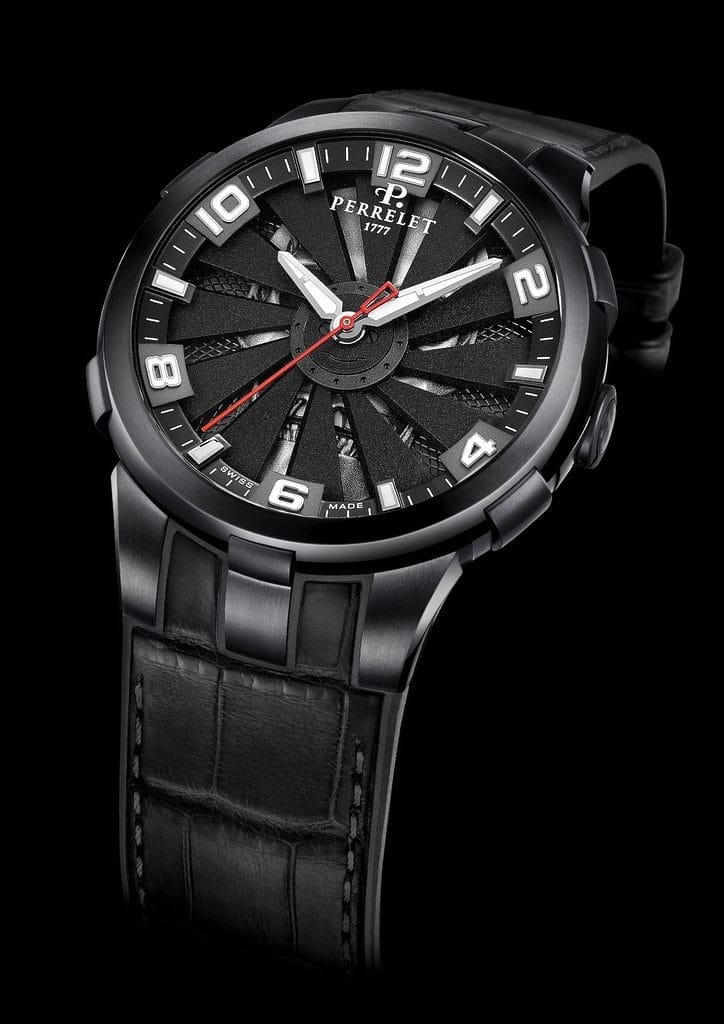 La Turbine Skull est équipée d’un mouvement à remontage automatique conçu et fabriqué en interne. Il est produit par Soprod, une société spécialisée dans les mécanismes horlogers et appartenant à Miguel Rodríguez, à qui appartient également Perrelet. L’entrepreneur espagnol possède un pôle horloger composé de six manufactures, ce qui garantit à la Maison une indépendance et une autonomie totales dans le développement de ses mouvements et de ses montres.
