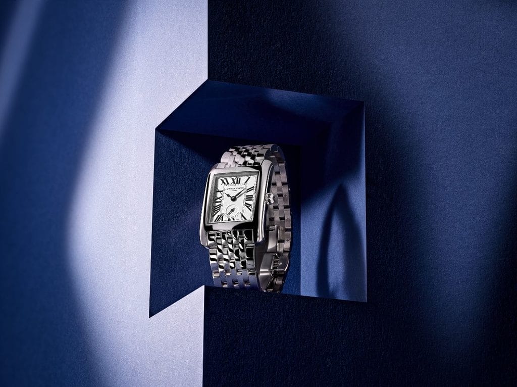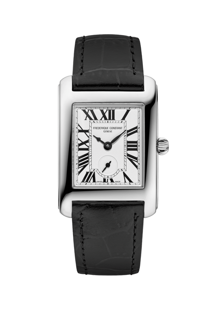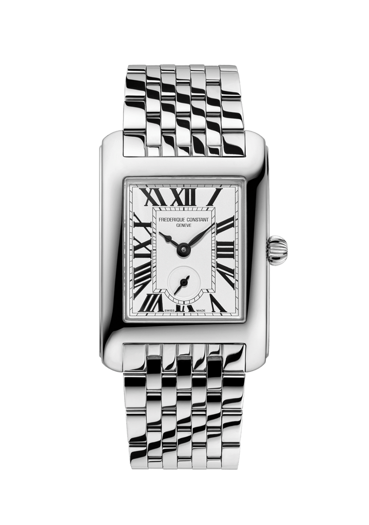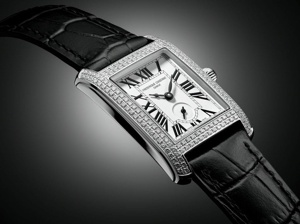 Il y a tout juste un siècle, dans les années 1920 – 1930, l’horlogerie se libérait de la boîte ronde pour inventer des formes carrées et rectangulaires. Toujours très prisée, cette esthétique Art Déco se renouvelle aujourd’hui avec Frederique Constant qui lance la Classics Carrée Small Seconds, déclinée en trois modèles. À une première version richement sertie répond une déclinaison 100% acier (boîte et bracelet), complétée d’une dernière proposition épurée et abordable, en boîte acier sur bracelet cuir. Elles partagent toutes un mouvement quartz doté de deux ans d’autonomie, un cadran argenté à deux aiguilles centrales et une petite seconde décentrée survolant une minuterie « chemin de fer » et de larges chiffres romains. So glam.