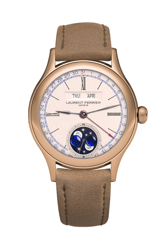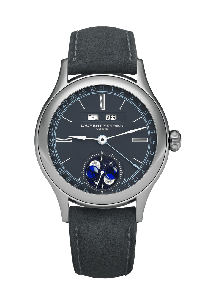 Le Calendrier Annuel à phase de Lune reprend les courbes poétiques du design élu Meilleure Montre Homme par le GPHG en 2010, année où la marque a vu le jour. Ce boîtier était donc tout indiqué pour la première complication phase de lune LAURENT FERRIER.