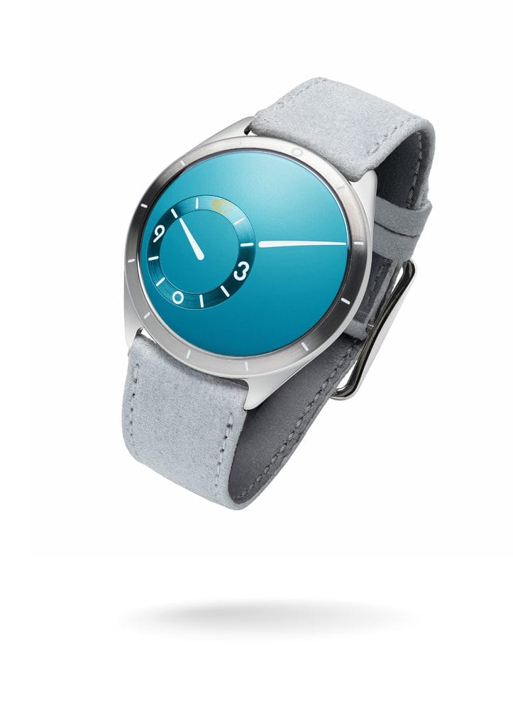 - Bracelet : Synthétique (Grey) ou cuir de veau (Aqua), boucle ardillon en titane