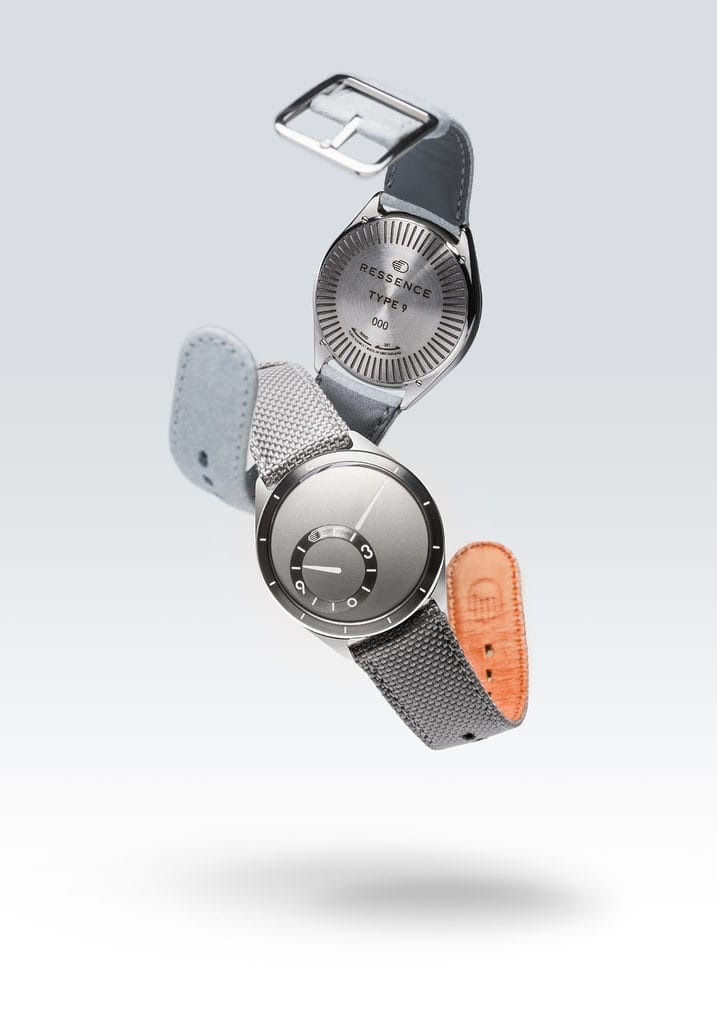 Réduite à 39 mm de diamètre, avec un poids plume de 39 grammes (bracelet inclus), la TYPE 9 propose une conception épurée et minimaliste, où seules les heures et les minutes sont affichées. La lunette gravée marque les minutes par intervalles de cinq, soulignant la simplicité graphique et fonctionnelle de Ressence. Ce design se marie à un bracelet élégant, disponible en tissu synthétique ou en cuir de veau, pour un porté raffiné au quotidien.
