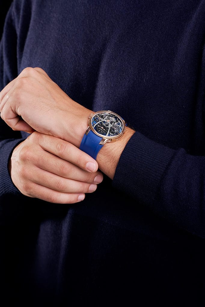 - Limitée à 18 pièces, en or rose 18 carats, avec cadran bleu océan.