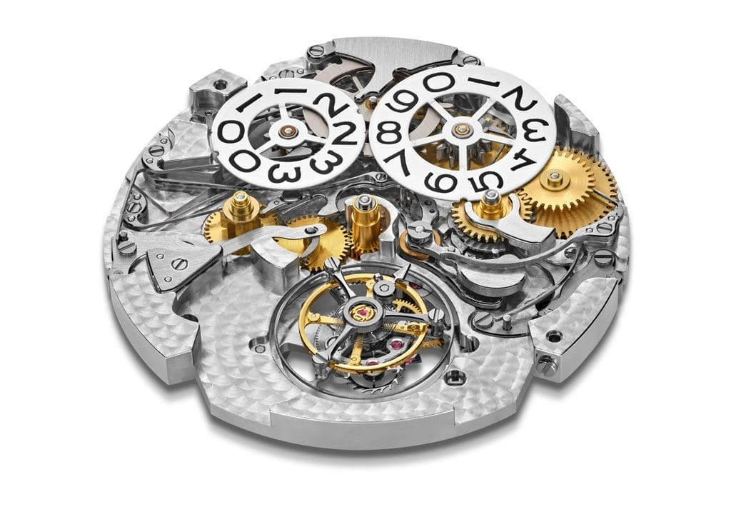 Ce mouvement sophistiqué gère l’affichage instantané des informations liées au quantième perpétuel, notamment la grande date, le jour et le mois, sans correction jusqu’en 2100, exception faite du calendrier grégorien. Le tourbillon volant, sans pont supérieur, améliore la précision grâce à sa fonction stop-seconde et est certifié Chronomètre par le COSC.