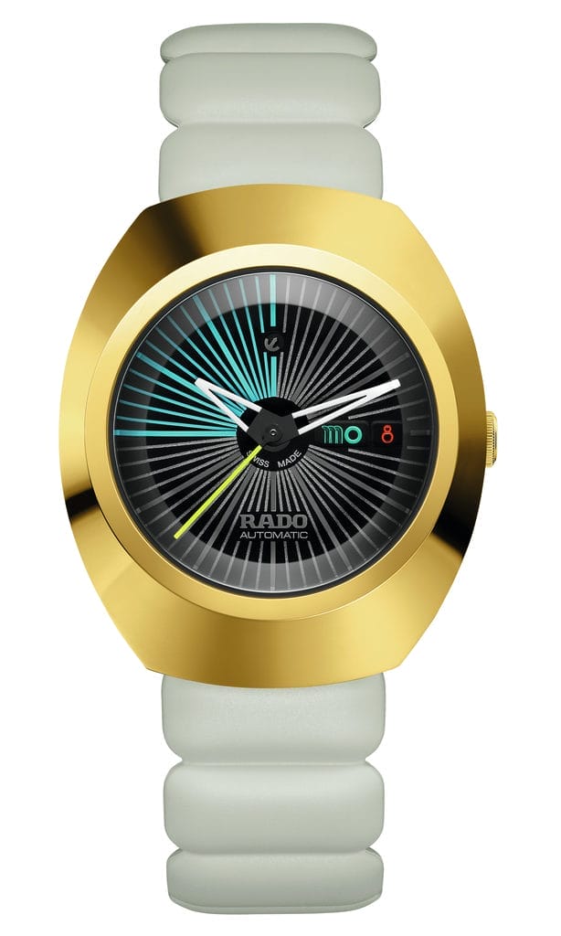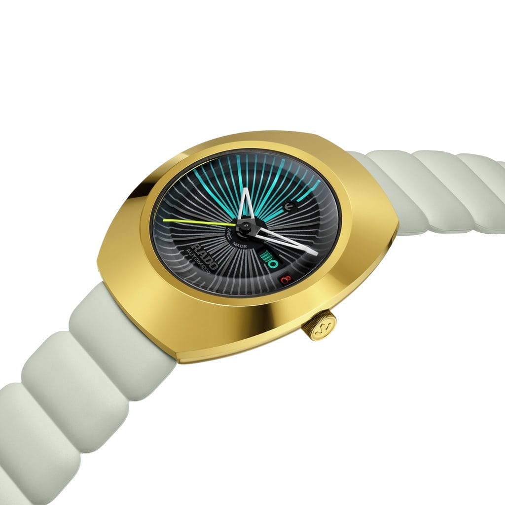 La Rado DiaStar Original x Tej Chauhan incarne parfaitement l’essence d’une deuxième collaboration entre le maître des matériaux et la superstar britannique du design industriel. Dotée d’un boîtier revisité en PVD couleur or jaune et d’un bracelet en caoutchouc au design audacieux, cette édition ne passera pas inaperçue. Fidèle à la vision innovante de Tej Chauhan, cette montre semble tout droit sortie du futur, comme une véritable machine à remonter le temps.