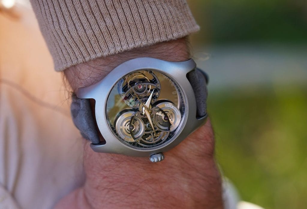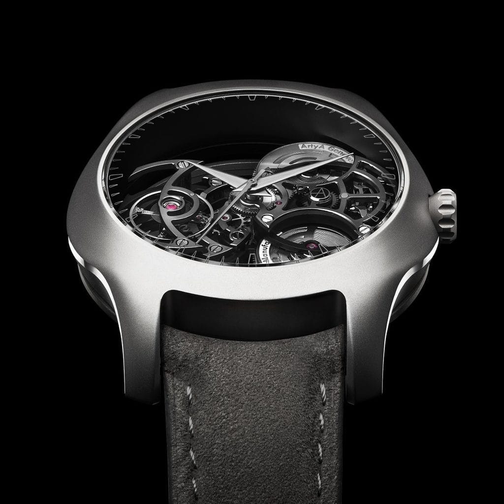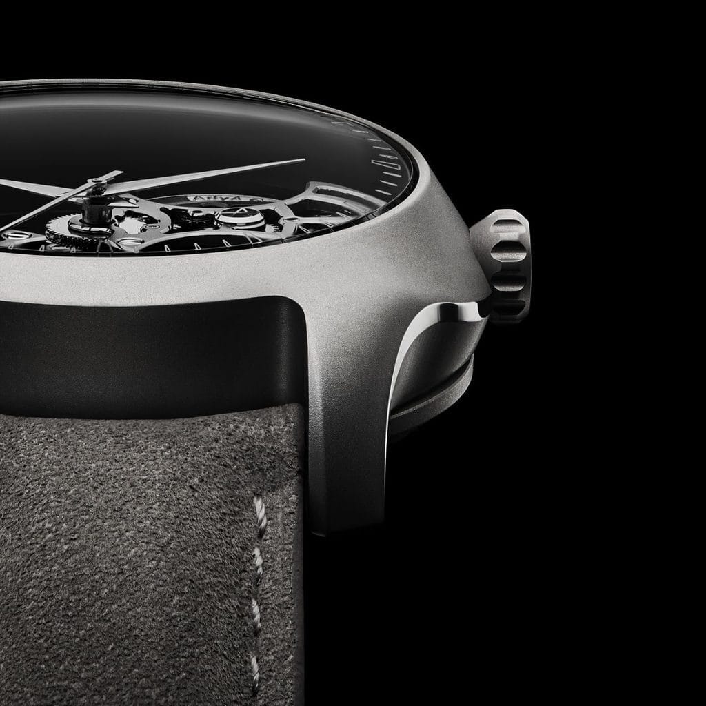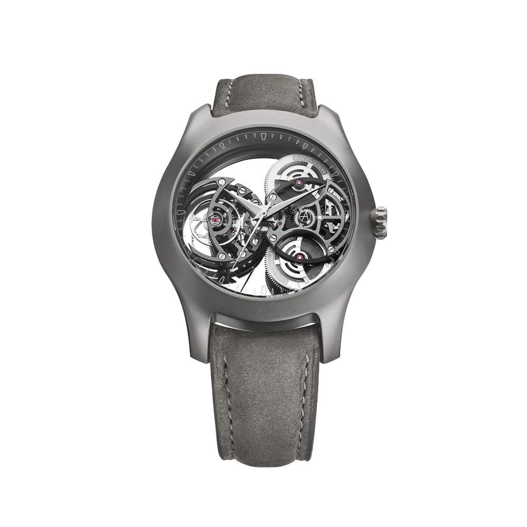 Imaginé par Jérémie Arpa, fils de Yvan Arpa, ce design complexe traduit l’héritage familial et indépendant de la marque. Son esthétique fluide et organique évoque la puissance des vagues, tandis que l’opacité du titane confère une profondeur inédite au boîtier.