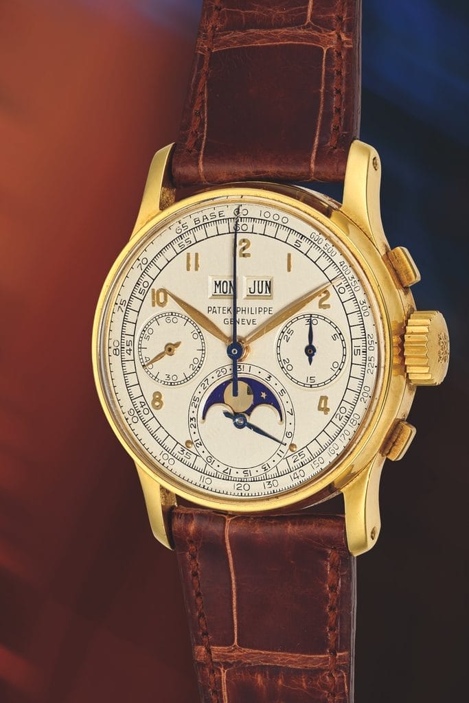 - À New York, une Patek Philippe 1518 en or jaune, absente du marché depuis près de 40 ans, a été cédée pour 1,45 million de dollars, soit presque quatre fois son estimation basse.