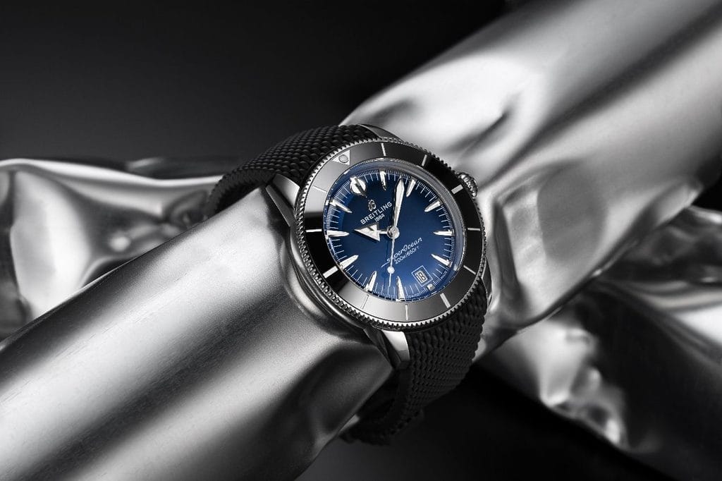 Leur point commun réside dans une approche résolument esthétique, sans compromis sur la performance. Aiguilles en forme de lance et de flèche, lunettes tournantes élégantes, proportions élancées : la Superocean s’adresse déjà aux aventuriers qui souhaitent pouvoir passer des flots au front de mer, du sport nautique au cocktail en terrasse.