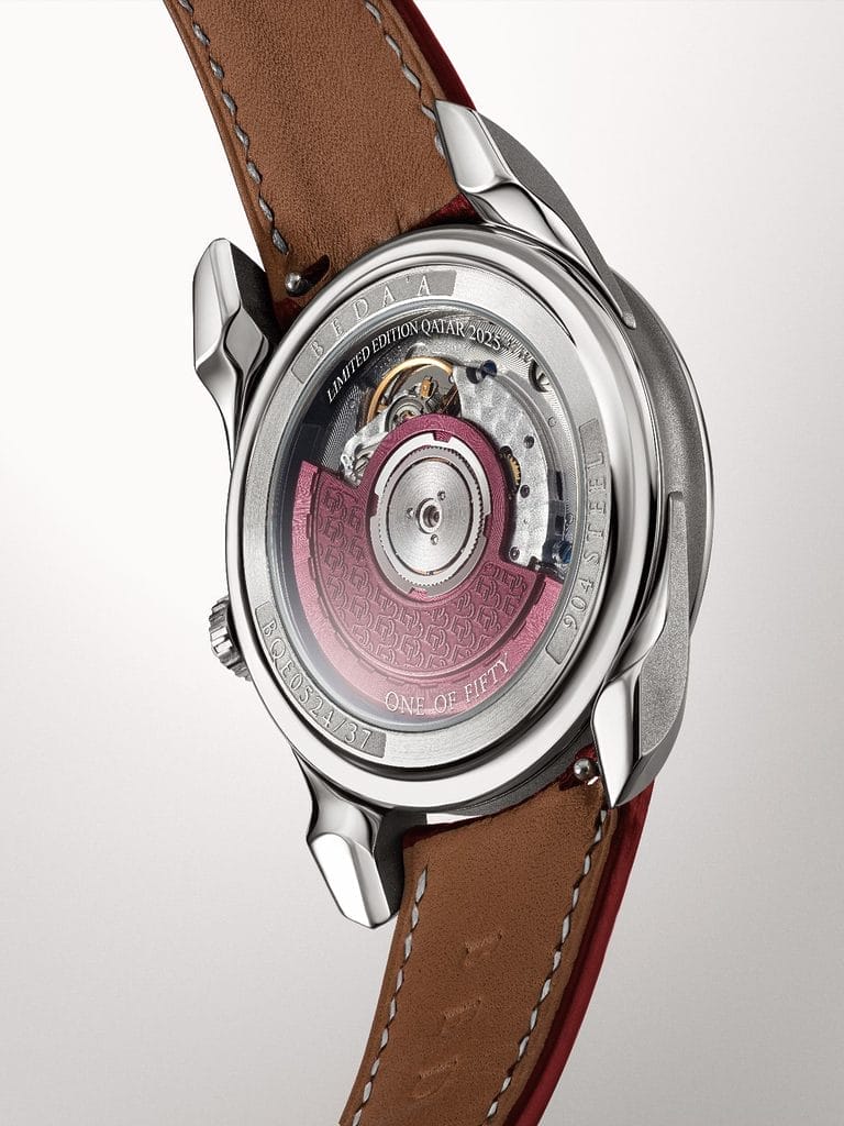 L’Eclipse : Qatar Limited Edition remplace les accents bleus originels de la montre par un profond bordeaux, couleur emblématique du drapeau qatari.