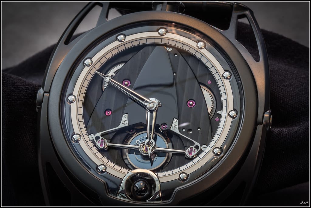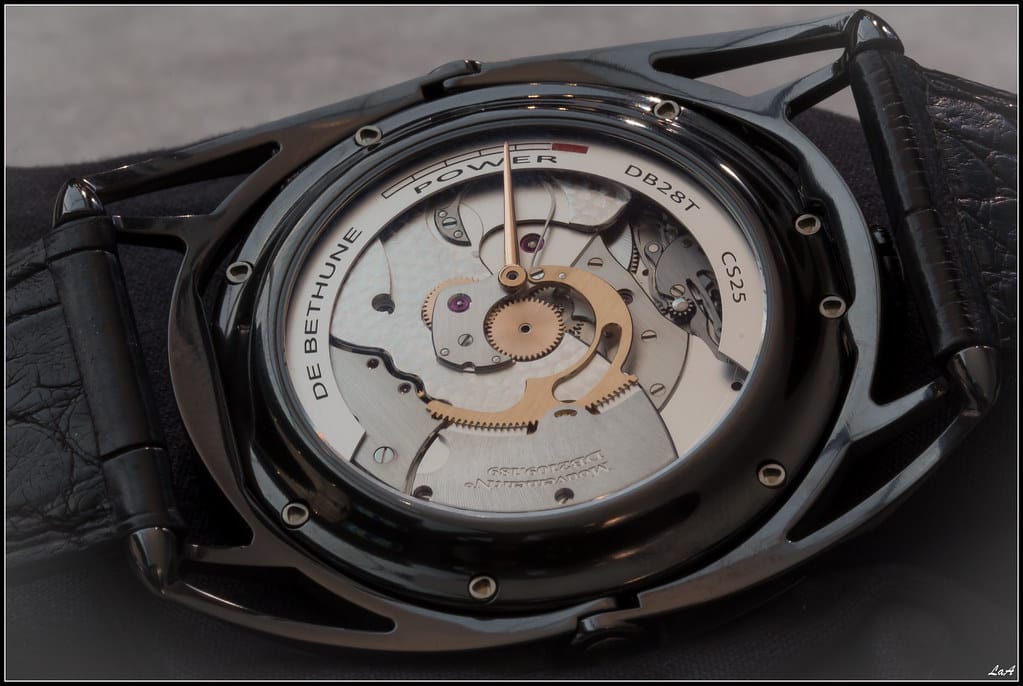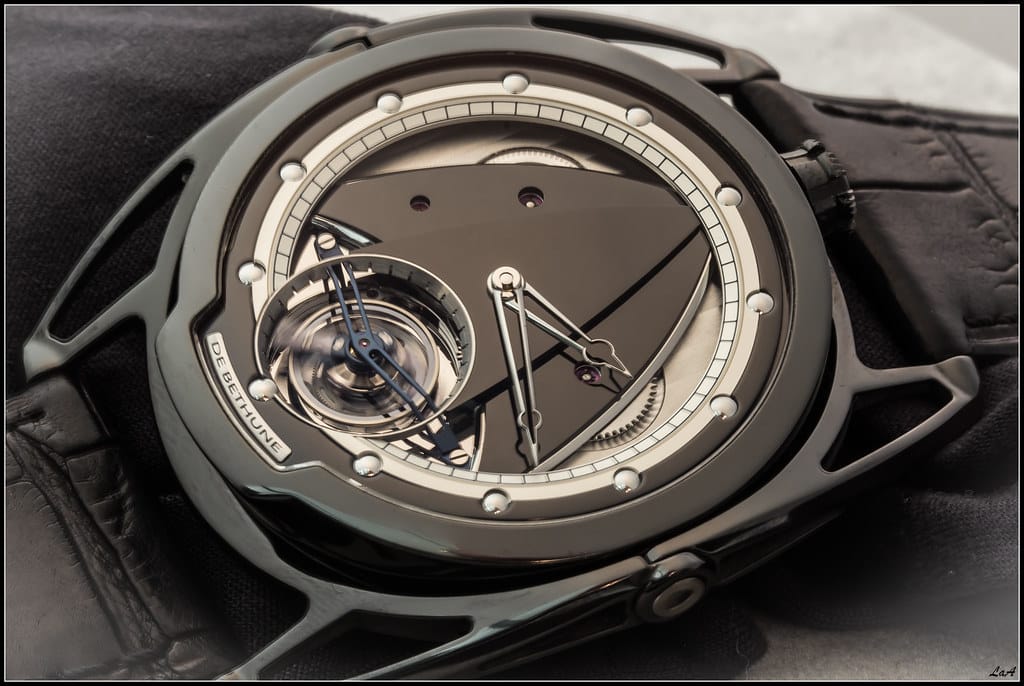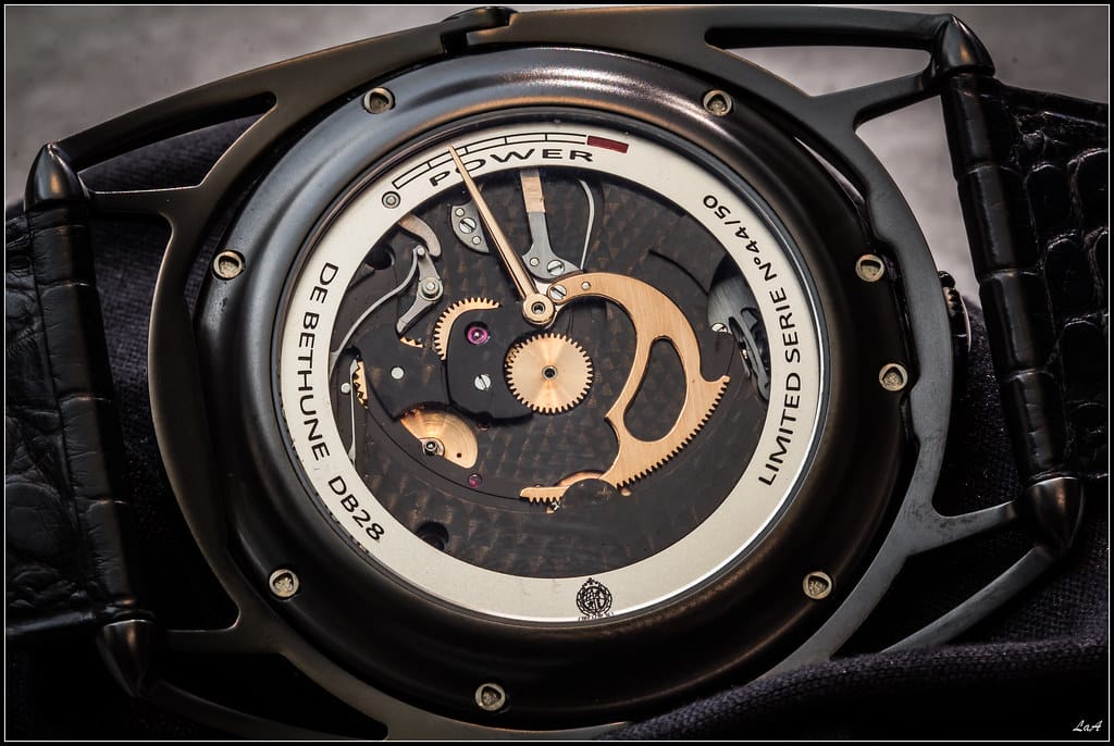 De Bethune prolonge également à Bâle sa ligne DB28 plus futuriste dans les tons noirs (Black collection) avec deux modèles pour lesquels le zirconium anthracite s’impose sur le boîtier et les berceaux en lieu et place du titane.