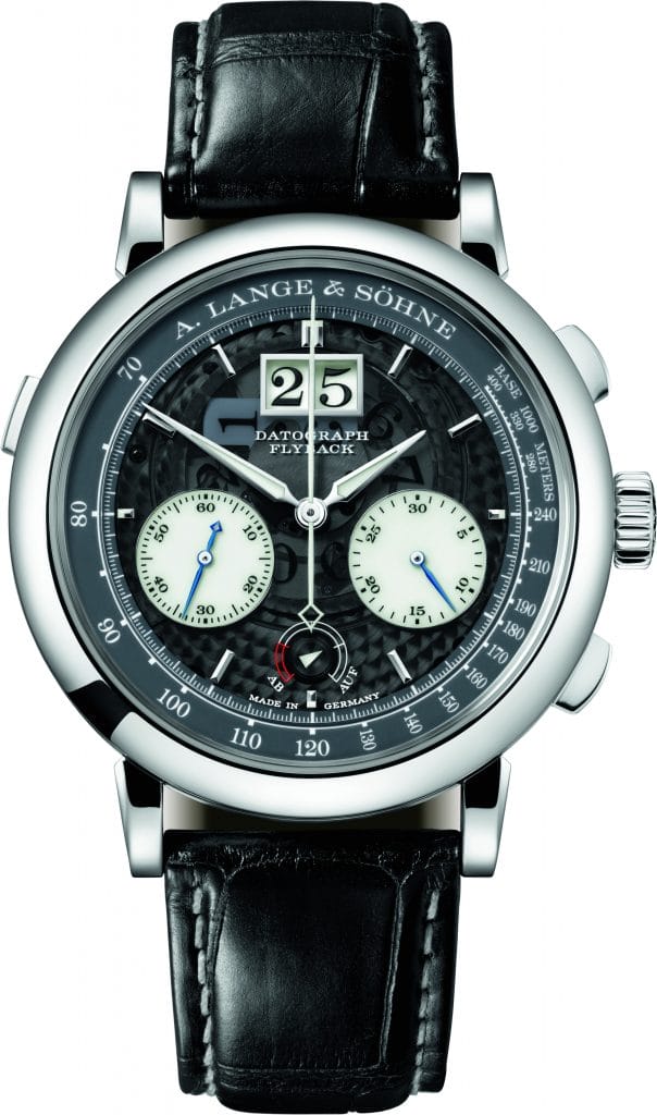 En 1999, A. Lange & Söhne définissait de nouveaux standards dans le design des chronographes avec le DATOGRAPH. La fonction flyback permet des mesures de temps consécutives ; une mesure de temps en cours peut être interrompue et une nouvelle peut commencer instantanément en appuyant une seule fois sur le bouton à quatre heures. Cette fonction rare permet de gagner du temps car le mécanisme flyback exécute trois actions en une seule pression sur le bouton : arrêter, remettre à zéro et redémarrer la mesure du temps.