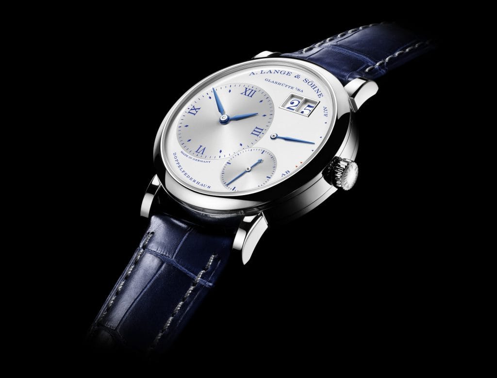 En 2018, la PETITE LANGE 1 a été dotée du nouveau calibre à remontage manuel L121.1, qui anime également le modèle anniversaire. Ce dernier offre un affichage de la date par chiffres sautants ainsi qu’un grand balancier à masselottes excentrées avec spiral oscillant librement. Le double barillet fournit une réserve de marche de 72 heures.