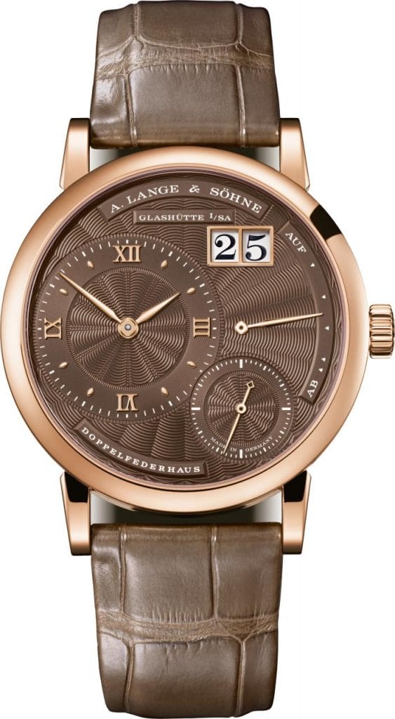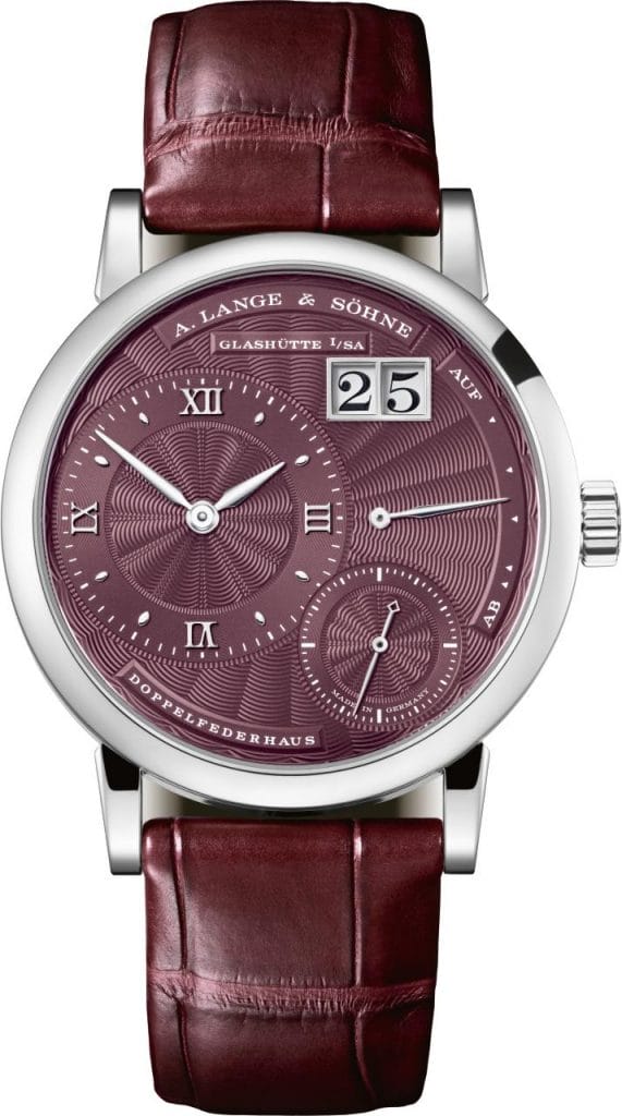 La diversité des couleurs et des matériaux représente le dénominateur commun des trois nouvelles interprétations, qui se distinguent par ailleurs par des styles très différents : logé dans un boîtier en or blanc, le cadran en or guilloché pourpre confère une allure radieuse au modèle. Ses aiguilles et appliques en or rhodié créent de splendides reflets sur le fond sombre. Limitée à 100 exemplaires, cette variante ne sera proposée que dans les boutiques A. Lange & Söhne. Le cadran gris, également guilloché, du deuxième modèle en or blanc dégage une froide élégance, tandis que le cadran guilloché aux tonalités brunes de la version en or rose accentue l’éclat chaud qui émane du boîtier, des aiguilles et des appliques. Enfin, les bracelets en cuir d’alligator des trois montres reprennent la nuance du cadran afin d’en renforcer l’effet.