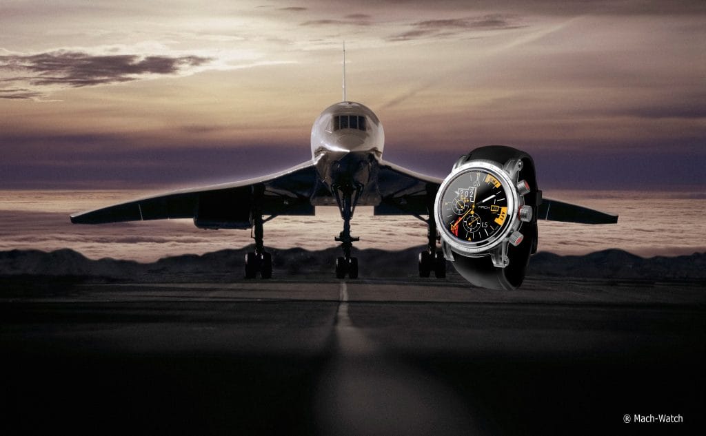 Aero-Design, marque de décoration, d’horlogerie et de bijoux sur le thème de l’aviation, lance la Mach Watch modèle Machmeter, montre exclusive en l’honneur des 50 ans du premier vol de Concorde. Le chronographe dont le cadran affiche le design original du machmètre, intègre une pièce authentique du Concorde Sierra Delta. La montre est présentée à Toulouse les 2 et 3 mars 2019. Première montre au monde avec le dessin du machmètre.
