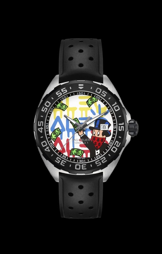 La première collaboration entre TAG Heuer et le « street-artist » date de 2016, à l’occasion d’Art Basel à Miami. A cette occasion Alec Monopoly a réalisé une fresque géante éphémère sur le mur de la boutique TAG Heuer située en plein cœur du Miami Design District. Un an plus tard les premières pièces nées de la collaboration entre l’horloger Suisse et Alec Monopoly voyaient le jour.