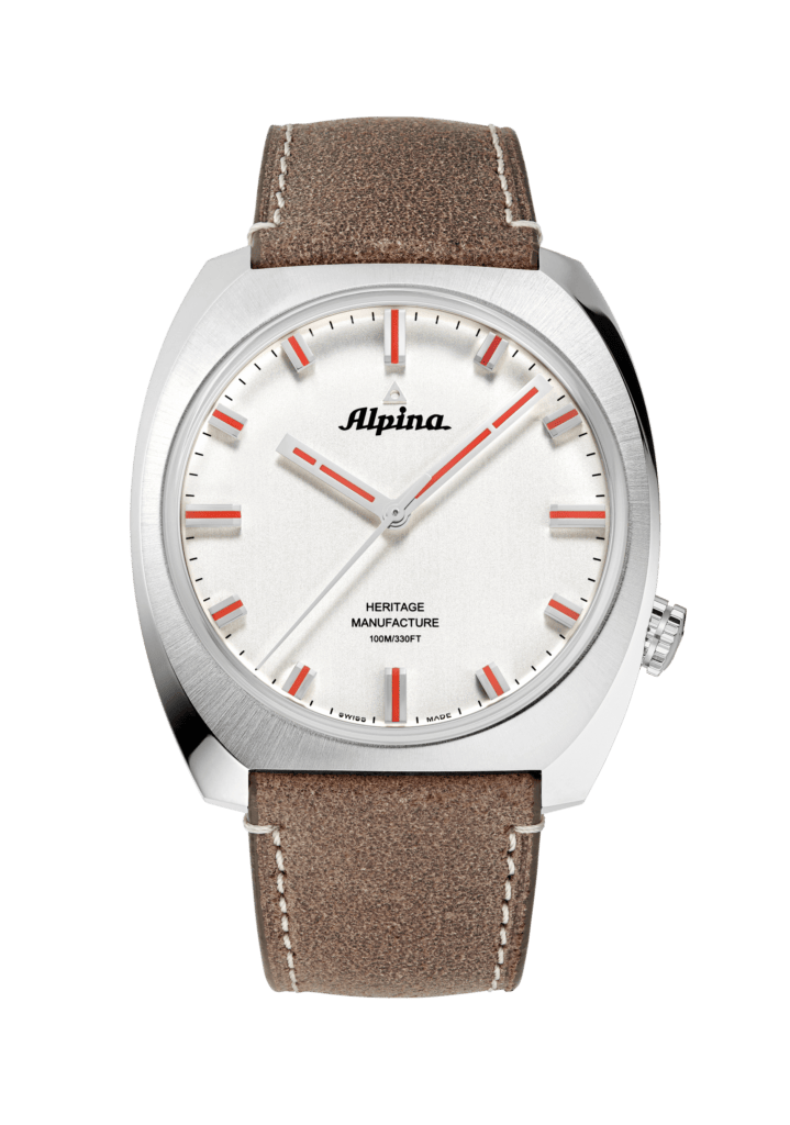 Pour honorer le design de son nouveau mouvement, Alpina a choisi le boîtier de sa collection Startimer Pilot Heritage. De forme coussin, elle est la combinaison parfaite d’un rond dans un carré aux arêtes délicatement arrondies, soulignées par une carrure alternant les surfaces polies et satinées.