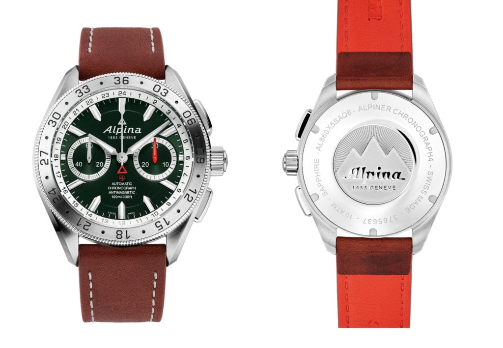 Lancé en 2014 par la manufacture horlogère suisse Alpina, l’Alpiner4 Chronograph Automatic revisite le concept « 4 » créé par la maison en 1938, qui réunissait pour la première fois les quatre caractéristiques essentielles d’une montre de sport – antimagnétique, résistante aux chocs, étanche et en acier inoxydable. Sportive par essence, cette ligne de chronographes s’étoffe, aujourd’hui, de trois nouveaux garde-temps dont les cadrans puisent leur sève, par leur couleur, au cœur des forêts alpines, de ses lacs et montagnes. Visite guidée…