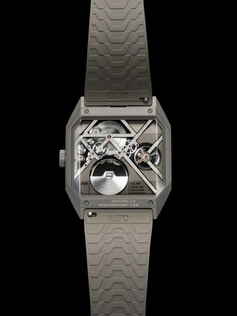 Sous cette apparence épurée, chaque ART 01 MONOCHROME EDITIONS cache une mécanique de haute précision. Le calibre manufacture A01 à remontage automatique et micro-rotor, développé par ALTO, incarne une ingénierie audacieuse et technique.