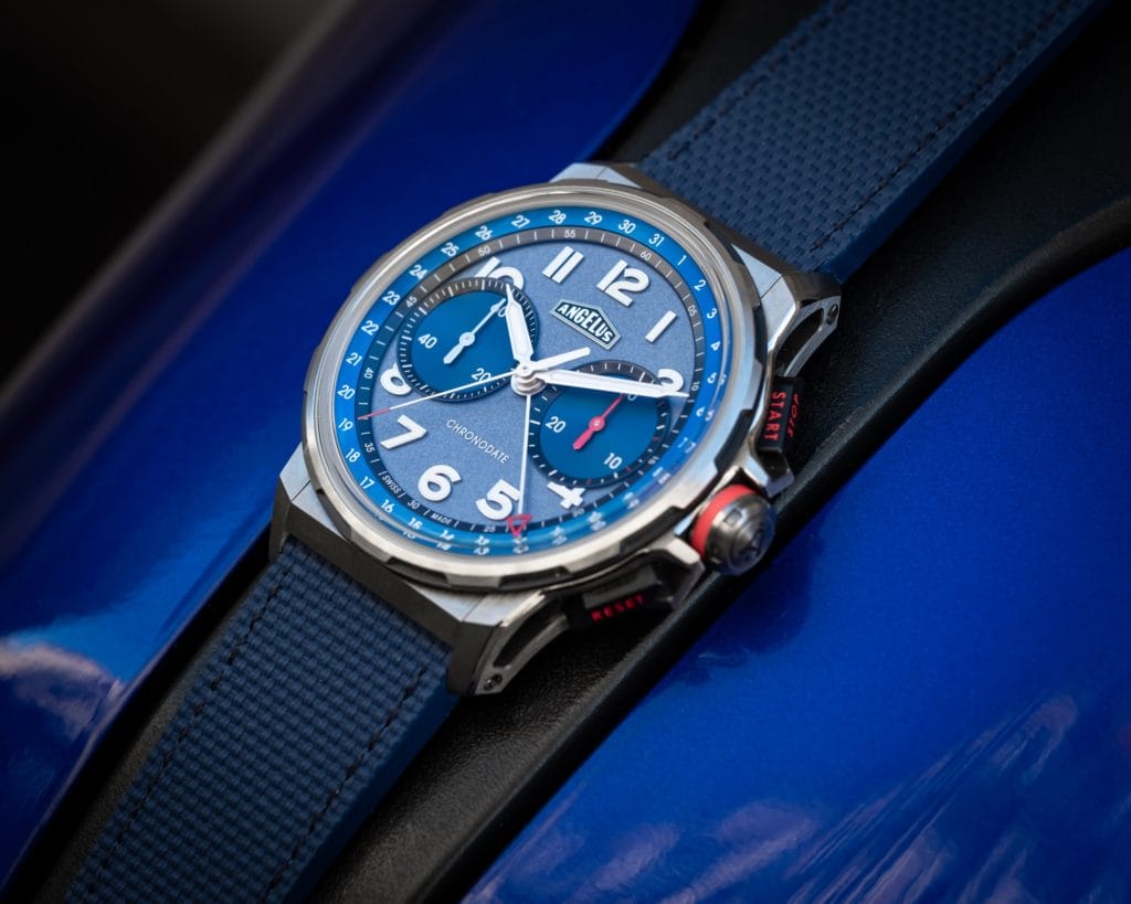 Angelus fut une manufacture pionnière dans l’évolution des montres à chronographe tout au long des années 1940 à 1960. Elles étaient de petit diamètre mais les compteurs sur le cadran ressortaient, particulièrement grands et lisibles. Dans cet esprit, les indications sur les cadrans de Chronodate aujourd’hui sont imposants. Structurés et en trois dimensions.