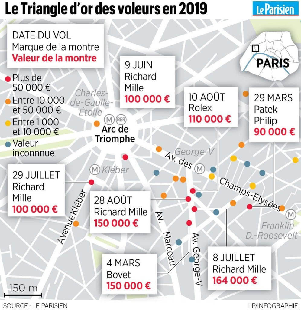 Carte des vols de montres à Paris – Le Parisien