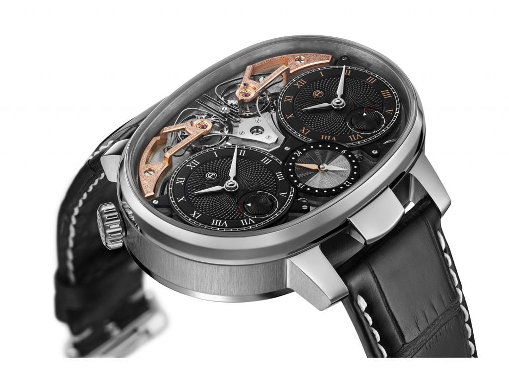 La Masterpiece 1 Dual Time Resonance a été développée pour mettre en valeur l’excellence artistique et technique d’Armin Strom, en mettant le phénomène de résonance au centre du projet.