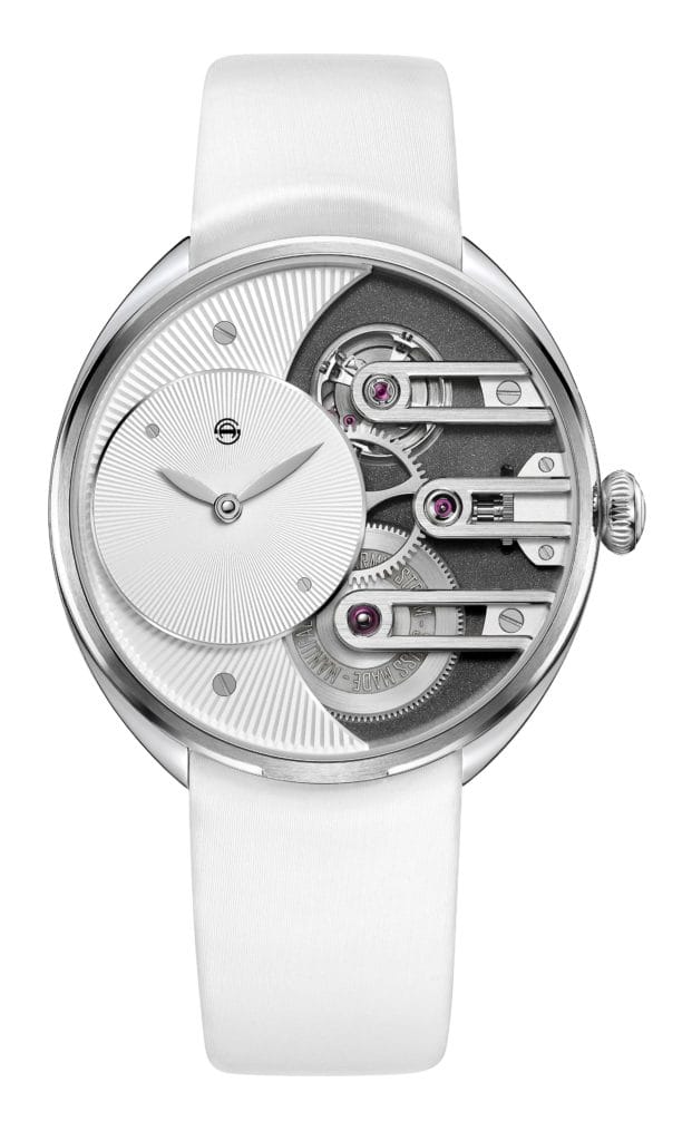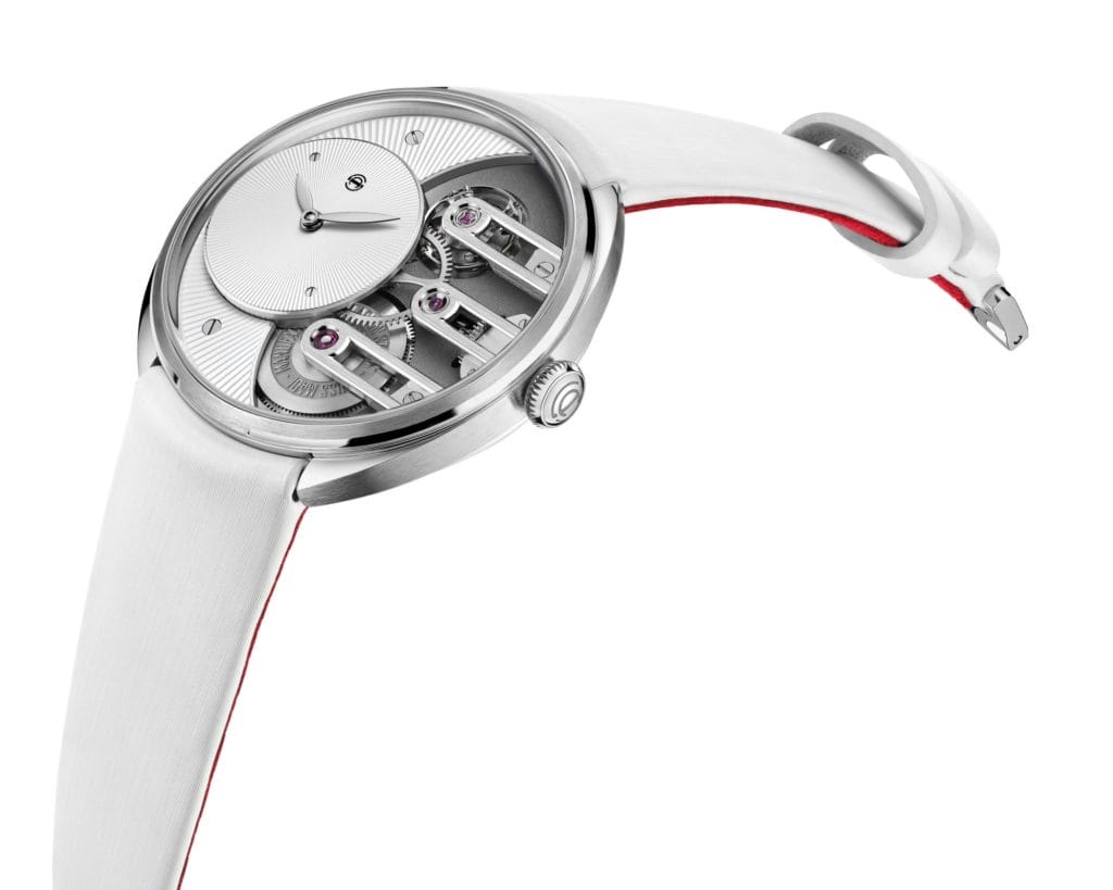 Cette dernière montre sans compromis de la manufacture basée à Biel-Bienne est un modèle résolument féminin, ce qui ne l’empêche pas d’afficher l’aspect technique du mouvement exclusif de la manufacture, qui fait fonctionner toutes les montres Armin Strom.