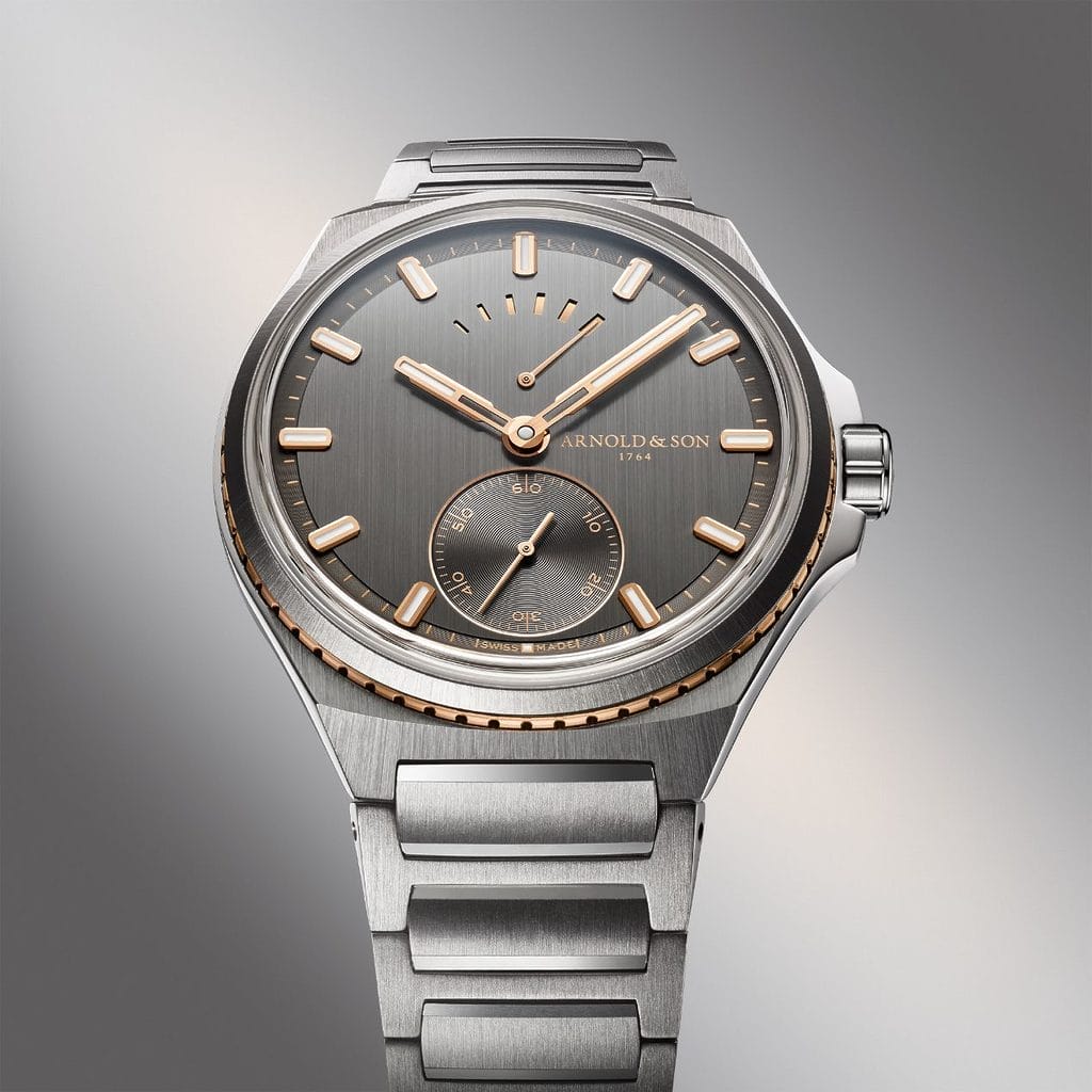 Le calibre automatique A&S6302, entièrement développé, usiné, assemblé et décoré dans les ateliers d’Arnold & Son, anime la montre. Visible à travers le fond saphir traité antireflet, il révèle ses finitions d’exception : ponts palladiés décorés du motif « Rayons de la Gloire », platine perlée, vis bleuies et polies miroir, roues dorées cerclées et masse oscillante en or 22 carats ajourée, représentant à la fois la silhouette d’un navire et la forme d’un sextant. Son balancier à ancre suisse bat à 28 800 alternances par heure et offre une réserve de marche de 60 heures.