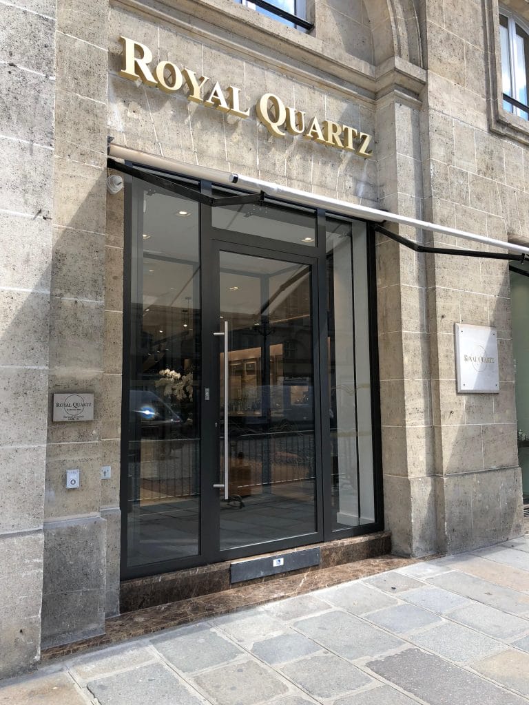 Intérieur de la nouvelle boutique Royal Quartz, rue Royale à Paris