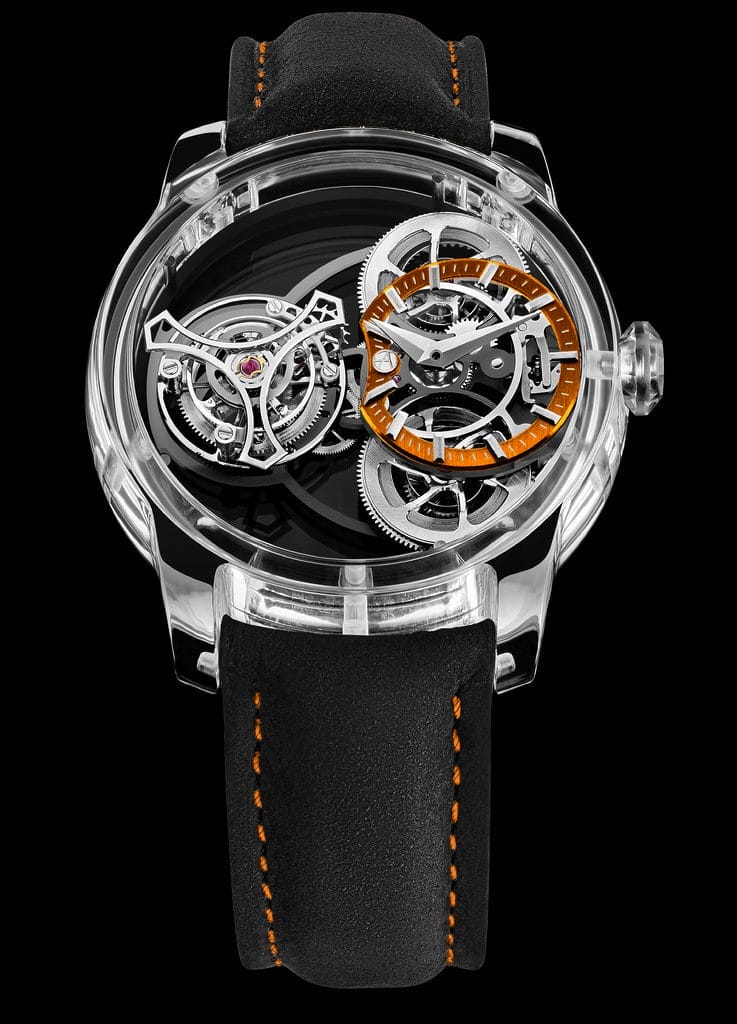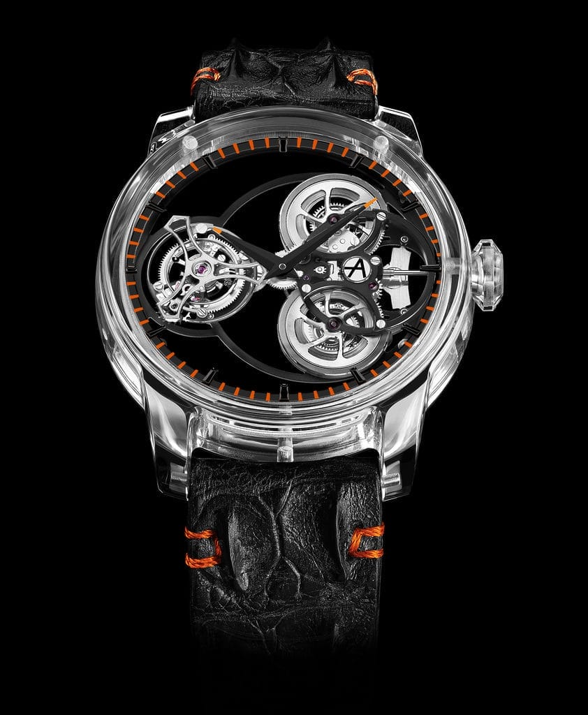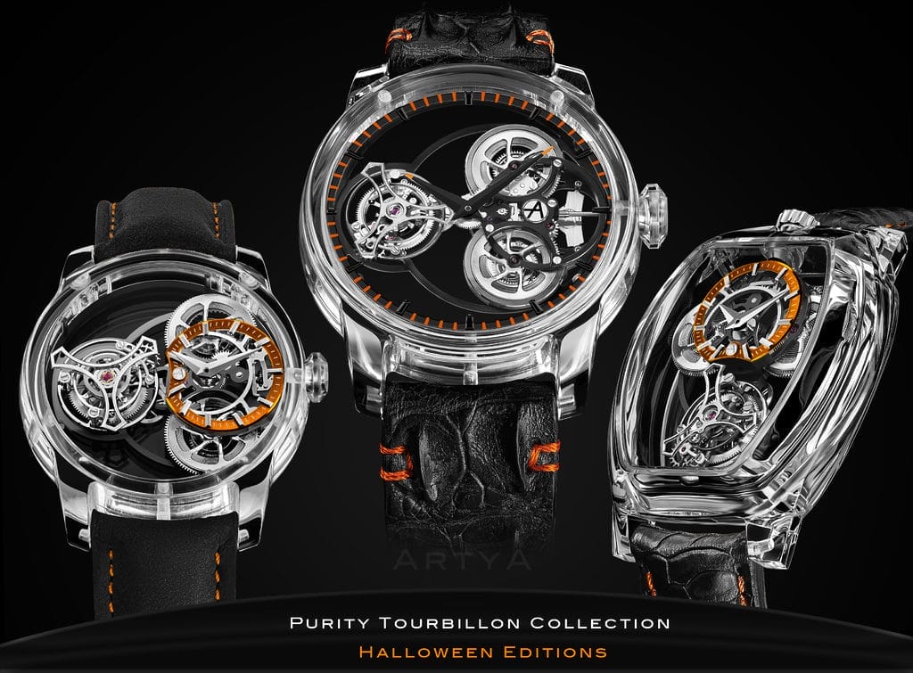 Et si des garde-temps de haute horlogerie jouaient le jeu de la fête la plus terrifiante de l’année ? ArtyA relève le défi créatif en présentant trois montres incarnant l’esprit Halloween : le noir, la lumière, l’ombre, la transparence et l’orange… Des ingrédients qui pourraient nous faire froid dans le dos ! Et pourtant la magie opère… l’harmonie visuelle, l’équilibre, les contrastes entre couleurs; ces trois pièces d’exception incarnent à la fois un esprit ultra-créatif et décalé avec la quintessence de la précision, du savoir-faire artisanal et de l’élégance.