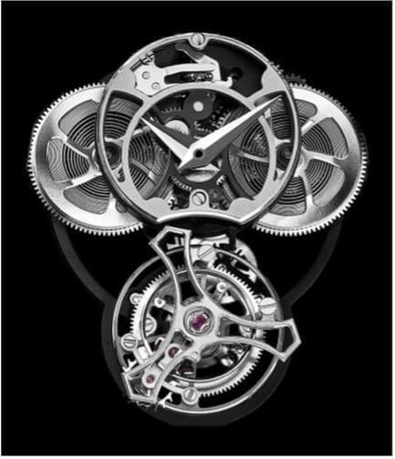 Mouvement à tourbillon volant avec double barillet (lui conférant une grande fiabilité chronométrique)