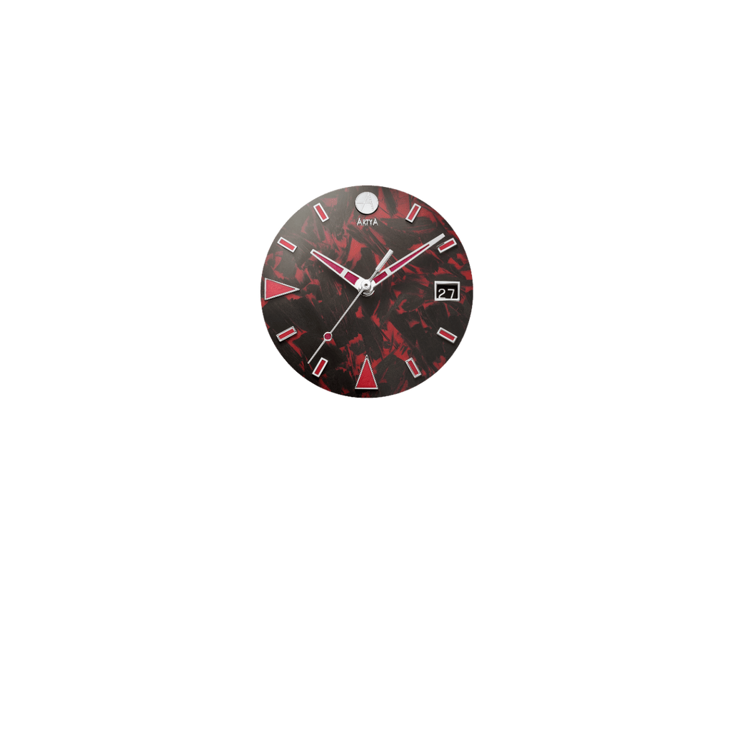 Il est le fruit de l’alliance entre des fibres de carbone et une matrice en résine de couleur, usiné une fois l’ensemble solidifié sous haute pression et haute température. Ce matériau composite séduit par ses propriétés tout autant physiques qu’esthétiques grâce à la disposition aléatoire des fibres offrant un visage unique à chacune des montres.