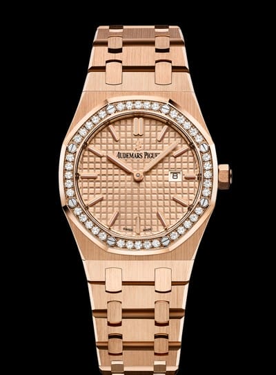 La boîte en or rose 18 carats s’accompagne de 40 diamants taille brillant alors que le cadran doré rose, orné du motif « Grande Tapisserie », souligne l’originalité de cette collection légendaire.