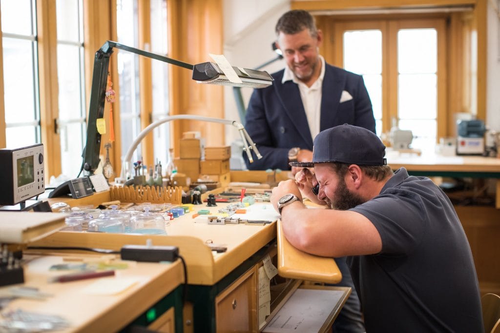 Après une visite du musée et de l’atelier de restauration, nos invités se sont essayés à l’assemblage d’un mouvement. Lee Westwood, ambassadeur de la marque depuis 2005, exprime son admiration pour le talent des horlogers : « Pouvoir voir de mes propres yeux la dose de réflexion, d’habileté et de patience qu’il faut pour fabriquer une montre, c’est tout simplement incroyable. »