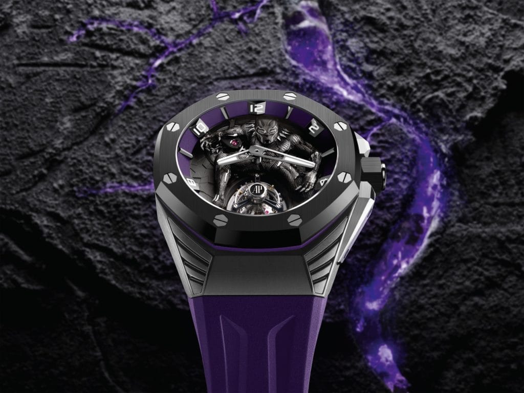 Après l’annonce de son partenariat à long terme avec Marvel Entertainment, la manufacture suisse de Haute Horlogerie Audemars Piguet est heureuse de lever le voile sur sa nouvelle Royal Oak Concept «Black Panther » Tourbillon Volant, limitée à 250 pièces. Inspirée par les montres historiques à personnage, dont celles créées par Gérald Genta dans les années 80, la Manufacture a souhaité rendre hommage à une nouvelle génération de héros issus du puissant univers MARVEL.