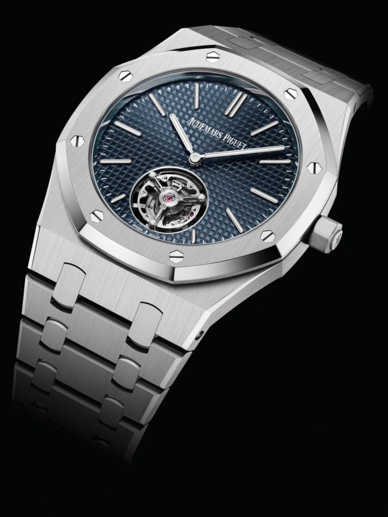 « 50 ans après sa création, la Royal Oak continue d’évoluer en défiant les modes et les conventions et son évolution se poursuivra durant les 50 ans à venir. Elle représente une source intarissable de développements techniques et esthétiques, comme en témoigne ce nouveau tourbillon volant extra-plat qui fait son entrée sur la classique « Jumbo » de 39 mm et les modèles de 37 mm de diamètre. L’architecture du mouvement a été conçue pour offrir une vue unique sur la cage réduite tout en procurant un contraste captivant de finitions. » Michael Friedman Responsable des Complications.