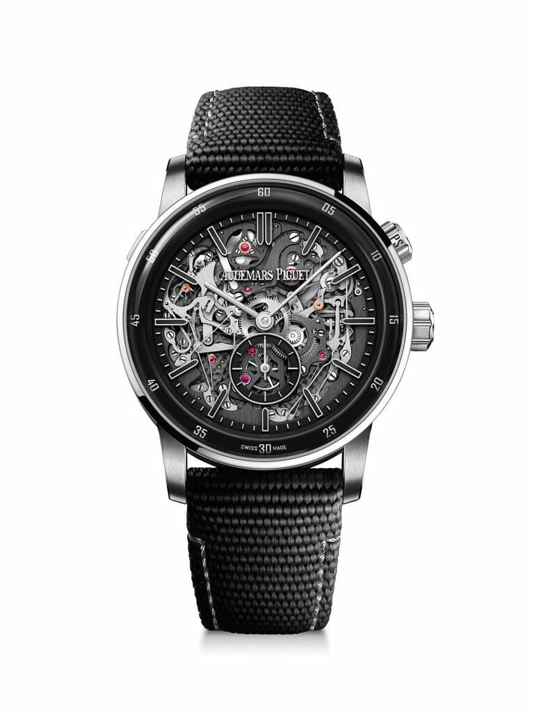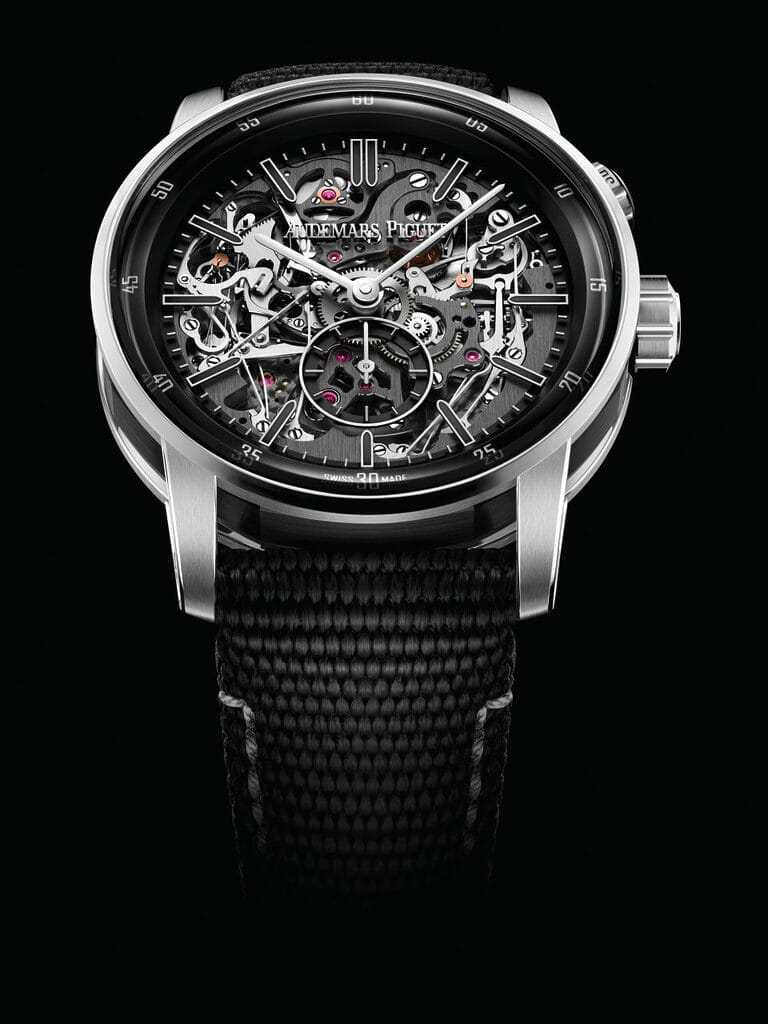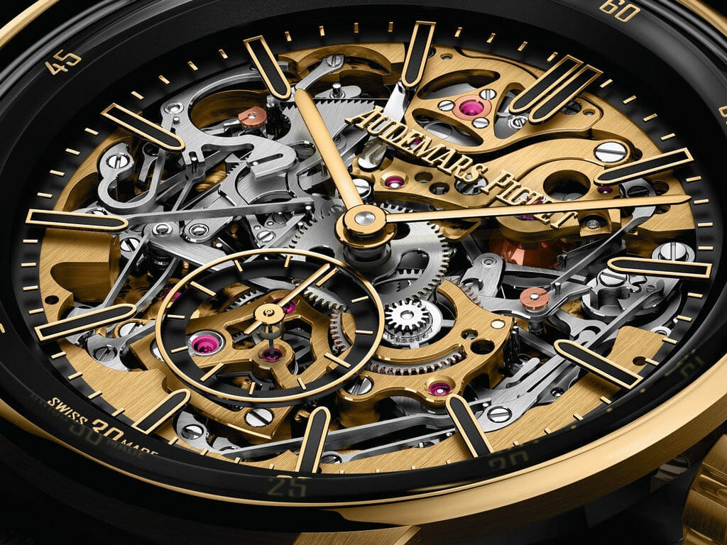 À travers ces nouveaux modèles, Audemars Piguet réinterprète son mécanisme de pointe Grande Sonnerie Carillon Supersonnerie en repensant l’esthétique du mouvement à remontage manuel de sorte qu’il puisse apparaître au travers du cadran saphir. Pour ce faire, les ponts à 4 et 6h ont été squelettés, le chemin de fer a été supprimé et le perlage a été remplacé par des traits tirés. La couleur de chaque mouvement a été harmonisée avec celle de la boîte des deux côtés de la montre. Cette année marque pour la première fois l’arrivée du cadran saphir dans la collection, faisant du mécanisme le visage de la montre. Un réhaut noir opalin semi-mat attire le regard sur le mouvement, lequel présente des décorations main raffinées mêlant tradition de Haute Horlogerie et innovation.