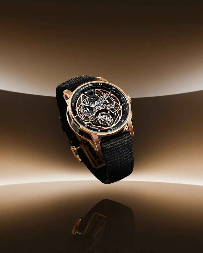 La manufacture suisse de Haute Horlogerie Audemars Piguet est heureuse de présenter une nouvelle variation de sa Code 11.59 by Audemars Piguet Tourbillon Volant Chronographe Automatique mariant or rose 18 carats et céramique noire. La céramique, matériau léger et ultrarésistant, fait cette année son apparition sur plusieurs modèles compliqués de la collection Code 11.59 by Audemars Piguet, repoussant encore les limites des finitions main. Dans la lignée du modèle lancé en 2021, ce garde-temps limité à 50 exemplaires combine design contemporain et savoir-faire ancestral.