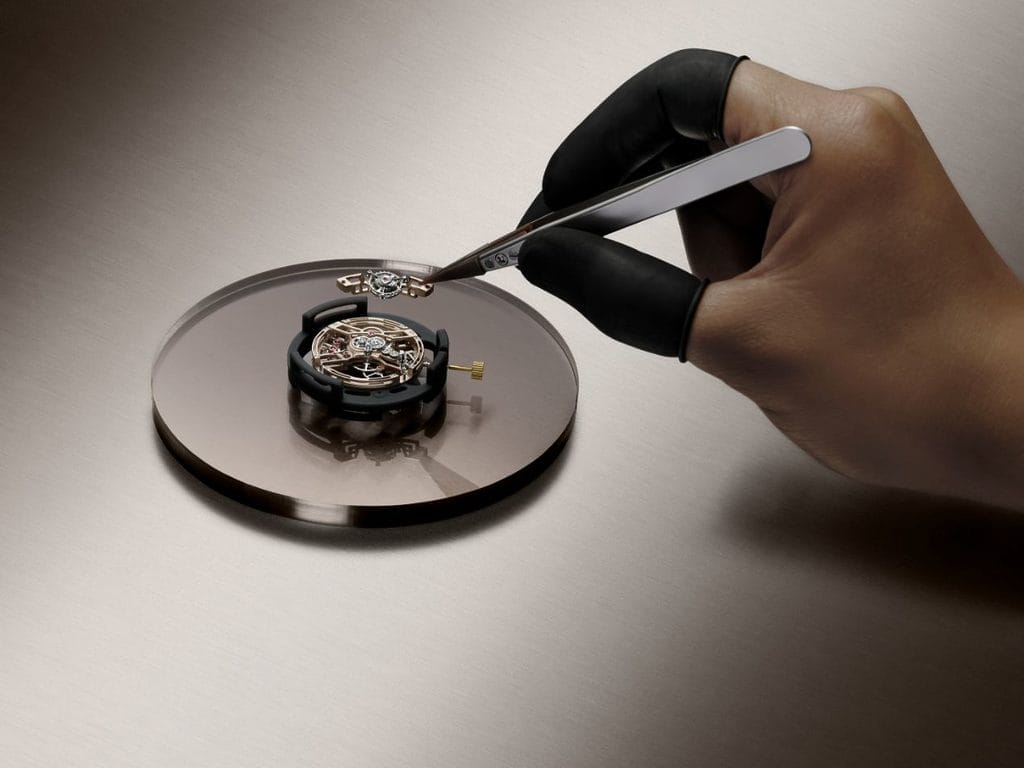 Ce mouvement a été développé grâce aux techniques ancestrales de squelettage qui depuis les années 1930 ont repoussé les limites du design des montres-bracelets. En enlevant autant de matière que possible de la platine et des ponts afin de laisser passer la lumière sans compromettre la fonctionnalité, le squelettage permet de révéler la beauté et la finesse du mécanisme. Usant des technologies de production les plus avancées, la géométrie de la platine et des ponts a été découpée à l’aide de machines CNC (commande numérique par calculateur), avant d’être affinée par des machines EDM (électroérosion par enfonçage). Cet usinage permet d’enlever de petites quantités de matière avec une précision extrême afin d’obtenir la forme souhaitée.